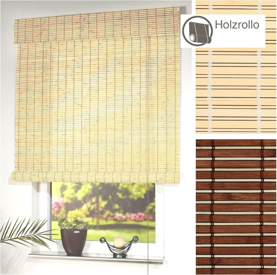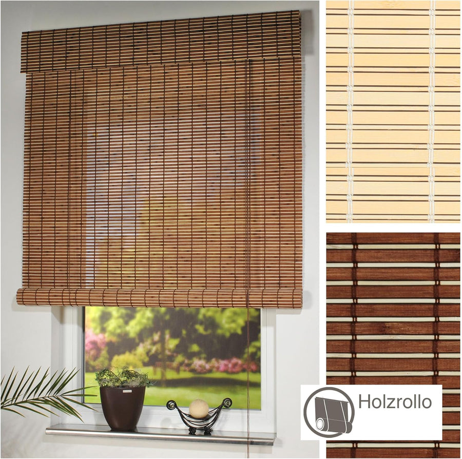 Liedeco Rollo Holz mit Seitenzug, Holzrollo für Fenster und Tür braun B 120 cm x L 170 cm Braun B120