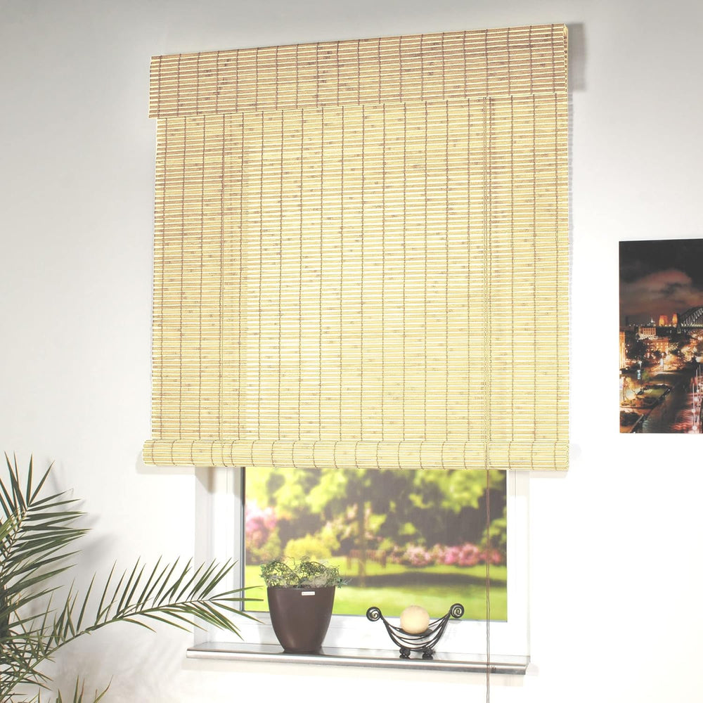 Liedeco Rollo Holz mit Seitenzug, Holzrollo für Fenster und Tür Natur B 140 cm x L 170 cm Natur 140