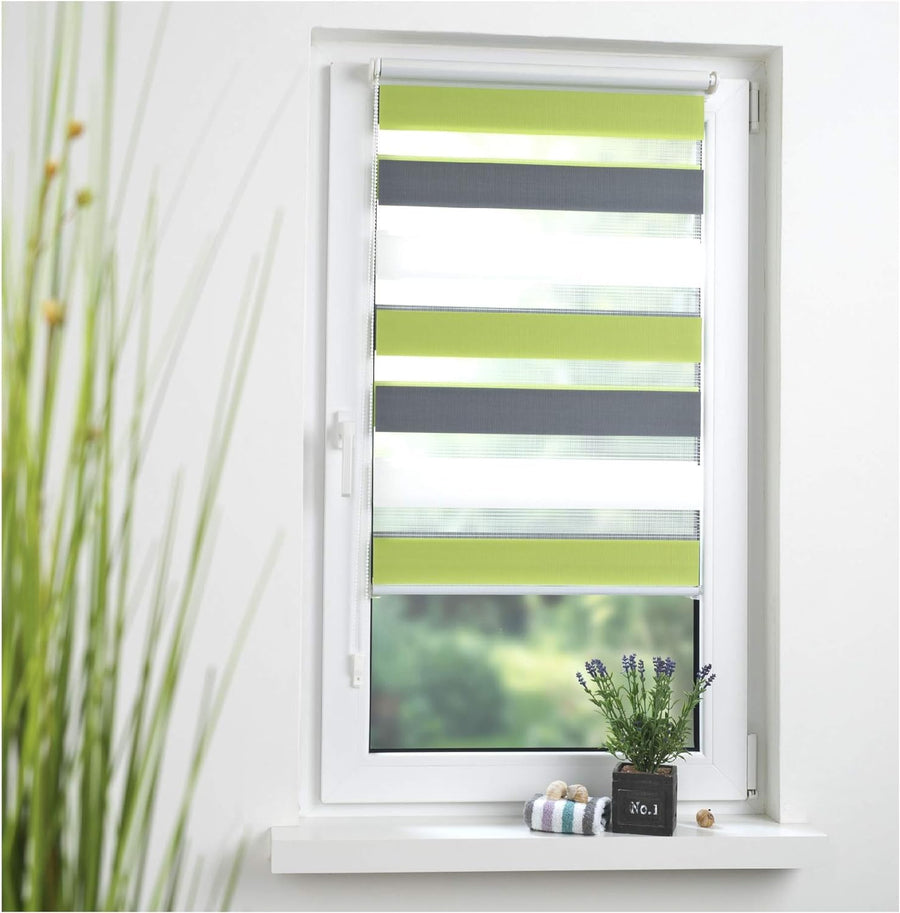 Liedeco® Duo Rollo Klemmfix - 45 x 160 cm grün/grau/weiss (Breite x Höhe) / 3 farbig/transparent lic