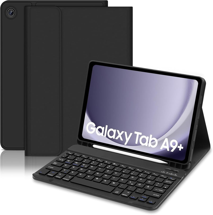 Samsung Galaxy Tab A9 Plus 11 Zoll 2023 Hülle Tastatur, Galaxy Tab A9 Plus Hülle mit QWERTZ Deutsche