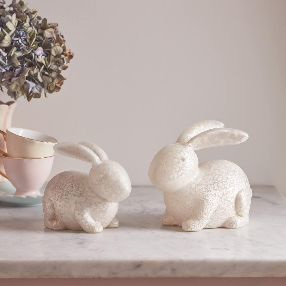 Lights4fun 2er Set LED Hasen weiss 15cm Osterdeko Modern Timer Ostern Deko Osterhase Pastell Oster D