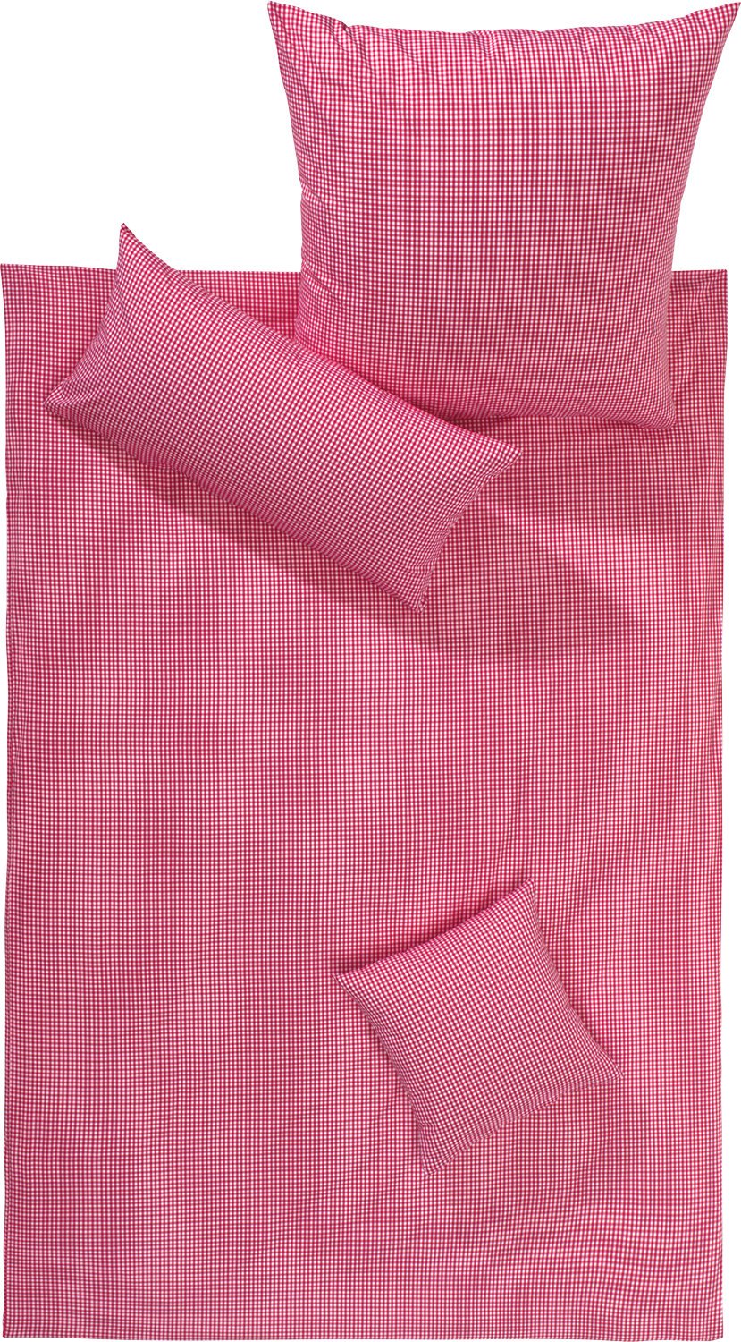 Lorena Bettwäsche Flanell buntgewebt rot-weiss Grösse 135x200 cm (80x80 cm) 135 cm x 200 cm + 80 x 8
