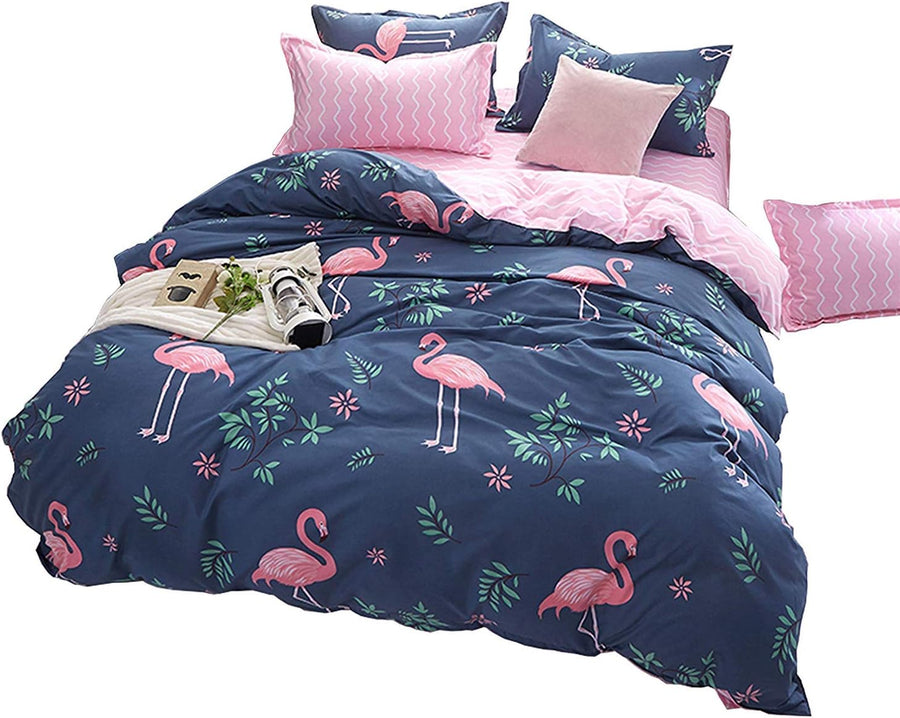 Loussiesd Flamingo Bettwäsche Set Blau & Rosa Bettbezug mit 1 Kissenbezug 2 teilig 155x220cm+80x80cm