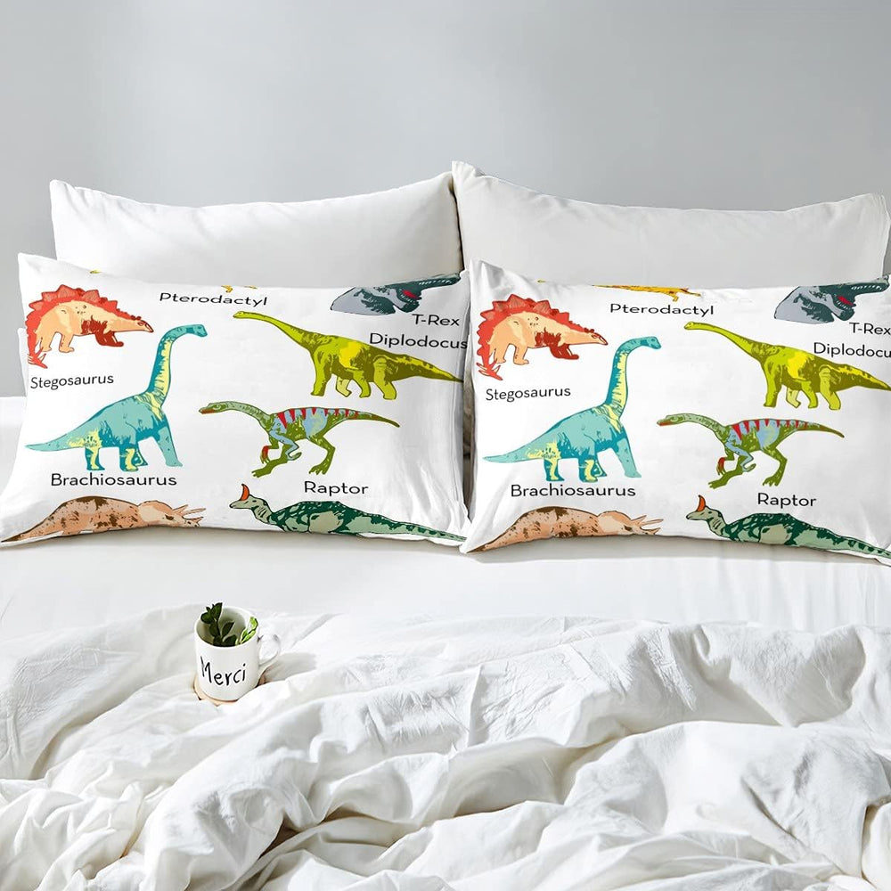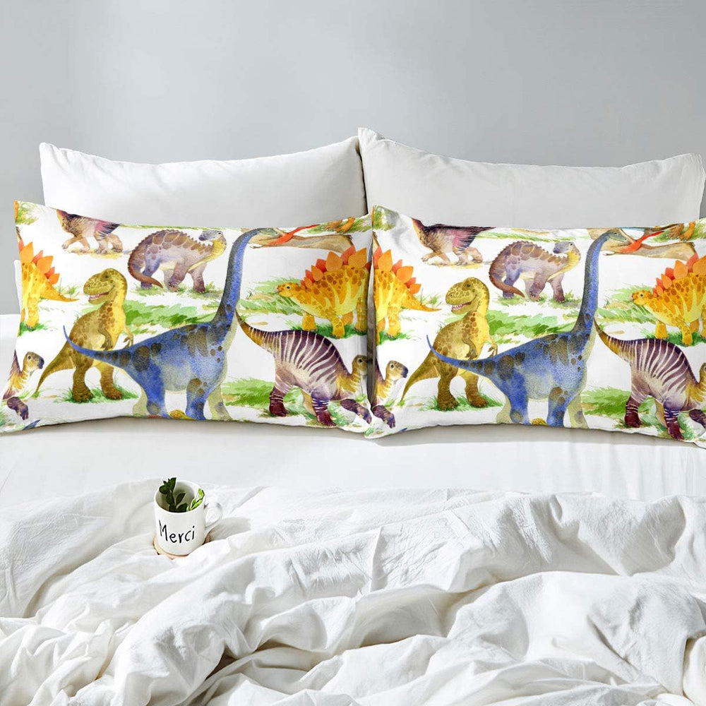 Loussiesd Cartoon Muster Bettwäsche Set Kinder Kids Dinosaurier Bettbezug mit 2 Kissenbezug 3 teilig