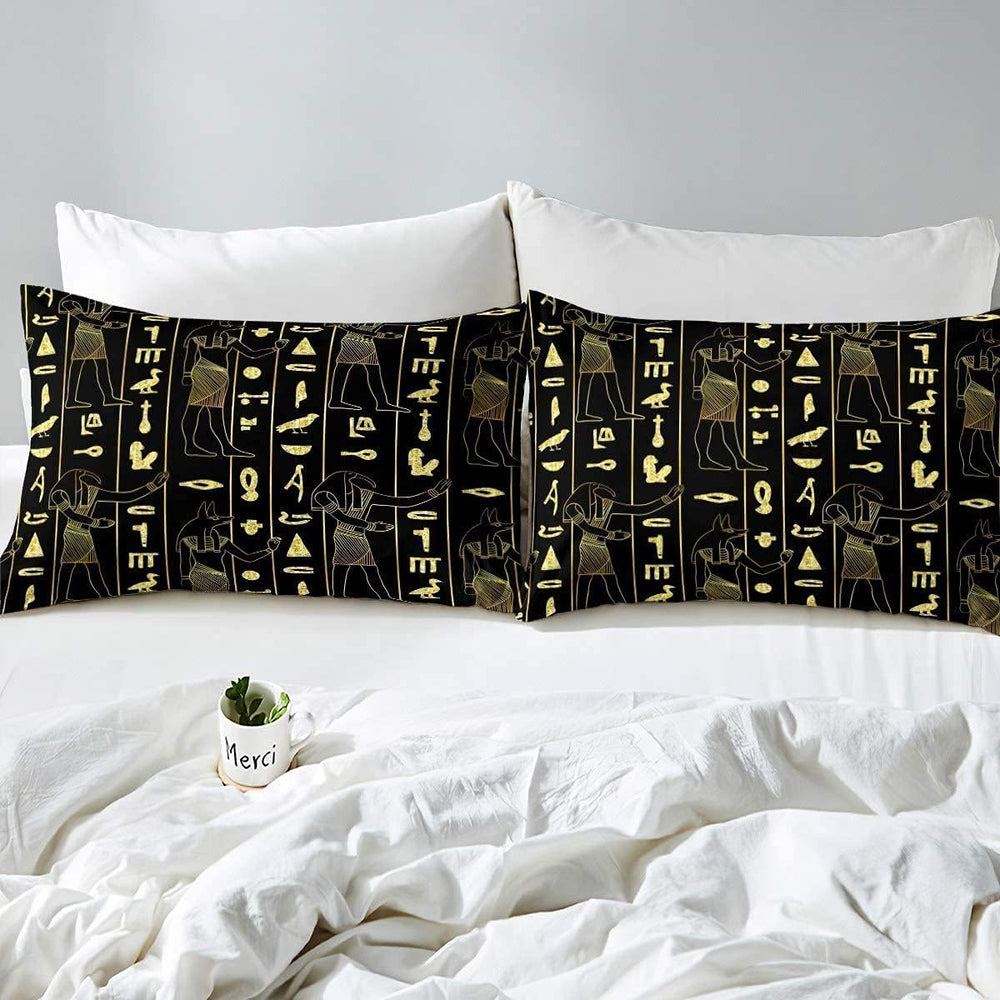 Loussiesd Antikes Ägypten Bettbezug Set Ägyptische Symbol Bettbezug Vintage Pharao Pyramide Bettwäsc