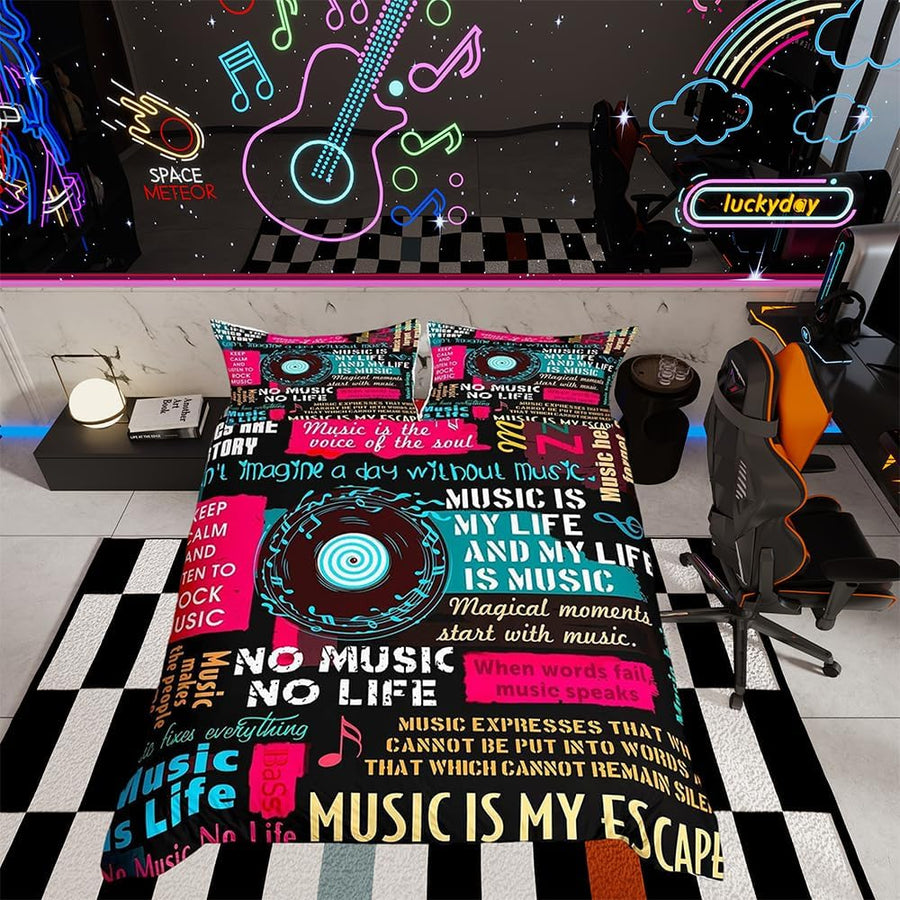Einzelbett mit Bettbezug und 1 Kissenbezug, Musiknoten, für Kinder und Erwachsene, Musik-Disc, klass