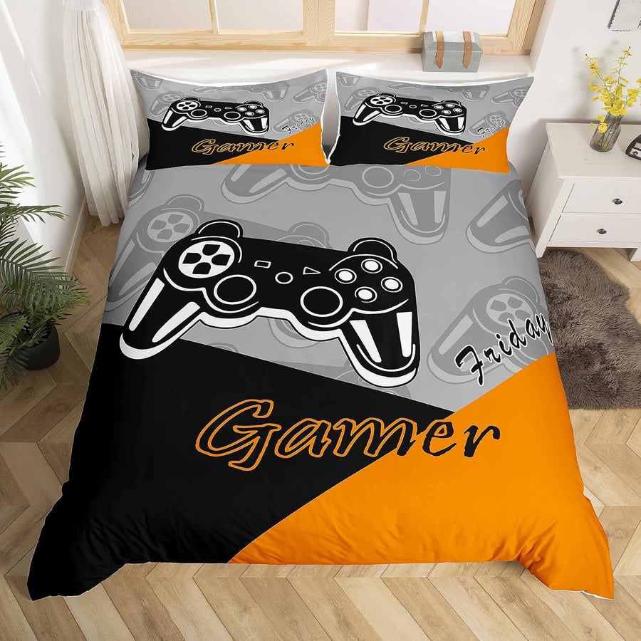 Loussiesd Gamer für Jungen, Videospiele, Bettbezug, Bettbezug mit 1 Bettbezug und 1 Kissenbezug, Ora