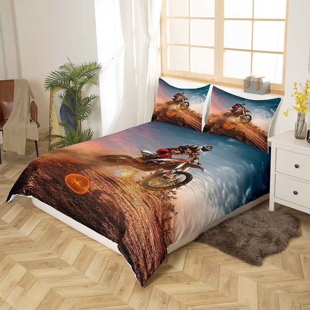 Loussiesd 3D Motorrad Druck Bettwäsche Set Offroad Extremsport Super Weich Bettbezug Set Kinder Jung