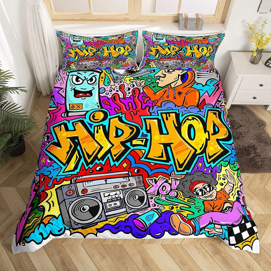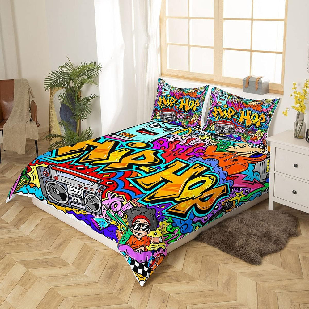 Graffiti-Bettwäsche-Set für Kinder, Hip-Hop-Thema, Radio, Rock, Jugendliche, Bettdeckenbezug, für Ju