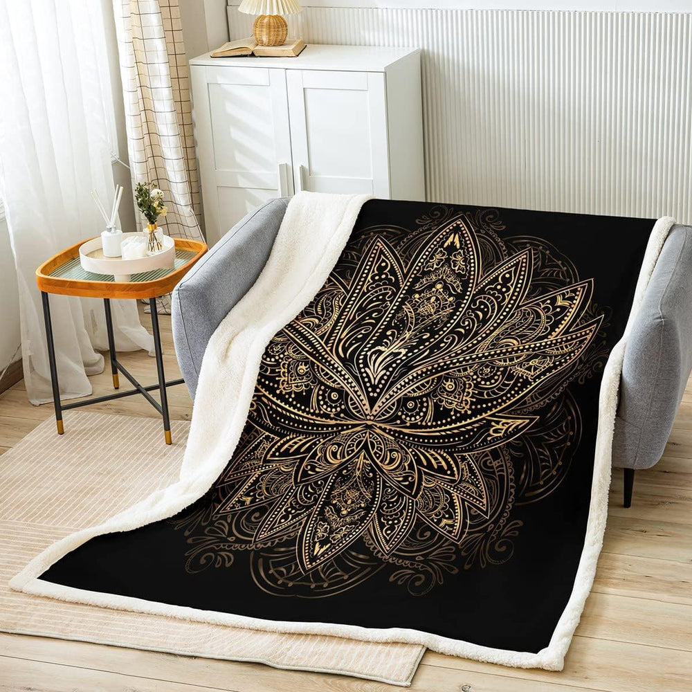 Loussiesd Boho Mandala Kuscheldecke 150x200cm Böhmische Dekorative Flanell Fleecedecke Hippie Mandal