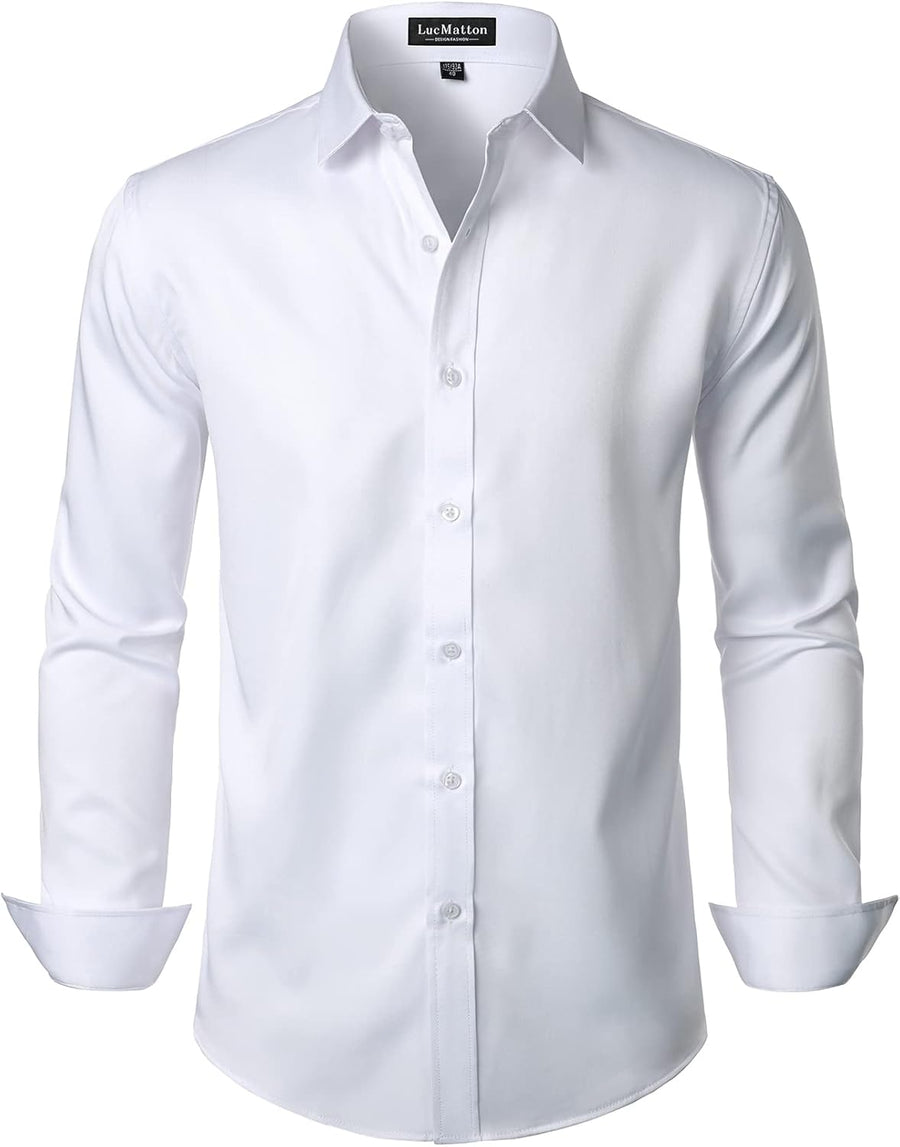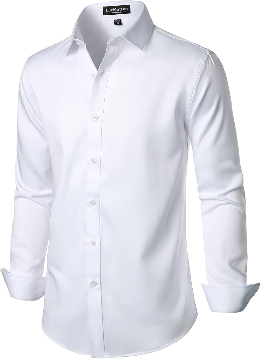 LucMatton Herrenhemden aus Baumwolle, Retro-Stil, langärmelig, Knopfleiste, schmale Passform, mit Ta