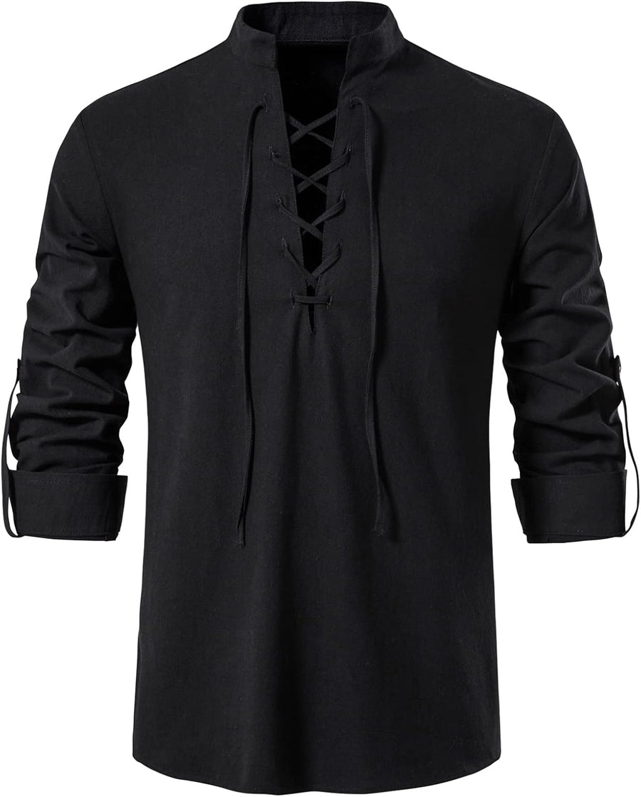 LucMatton Herren Baumwolle Retro Stil Roll-up Langarmshirt Casual Leinenähnliche Henley Tops, M Gr
