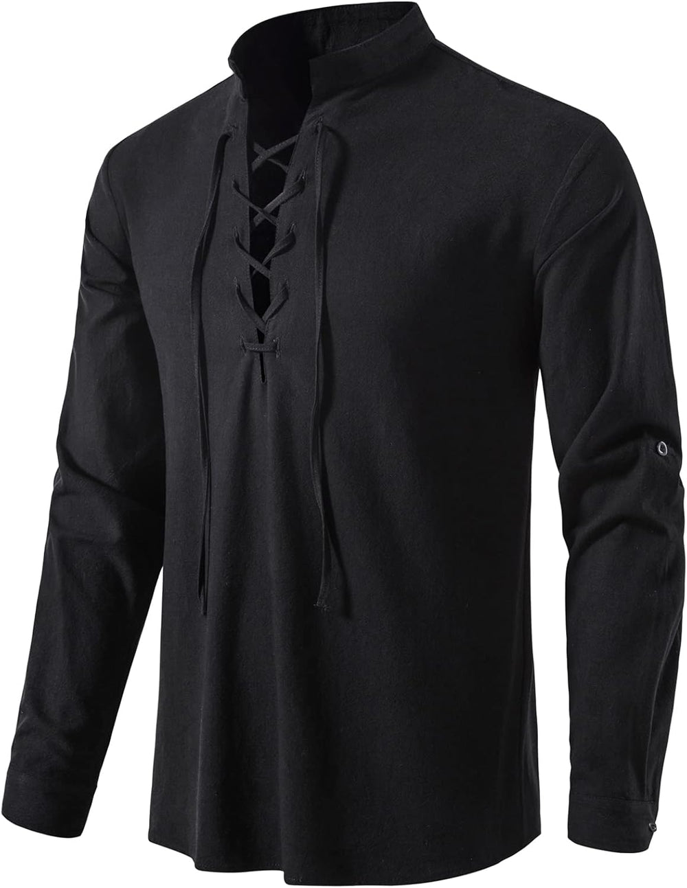 LucMatton Herren-Kostüm mit Schnürung, Baumwolle, mittelalterliches Vintage-Kostüm Schwarz M, Schwar