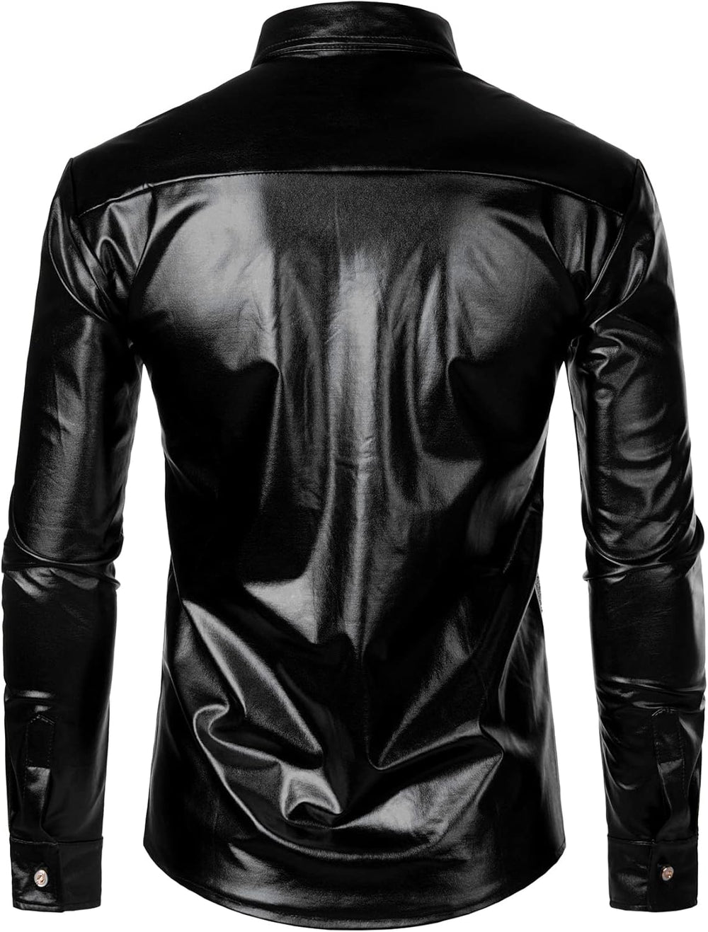 LucMatton Glänzende Metallic-Hemden für Herren, schmale Passform, Knopfleistenshirt, für Club, Rock,
