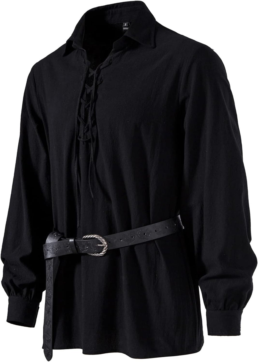 LucMatton Herren-Kostüm mit Schnürung, Baumwolle, mittelalterliches Vintage-Kostüm, Black-C, S