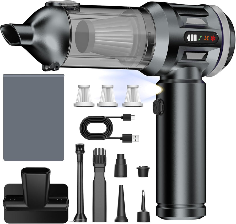 Handstaubsauger, 26000Pa Mini Akku Staubsauger Kabellos 4-In-1 Autostaubsauger 6000mAh 3-Gang Elektr