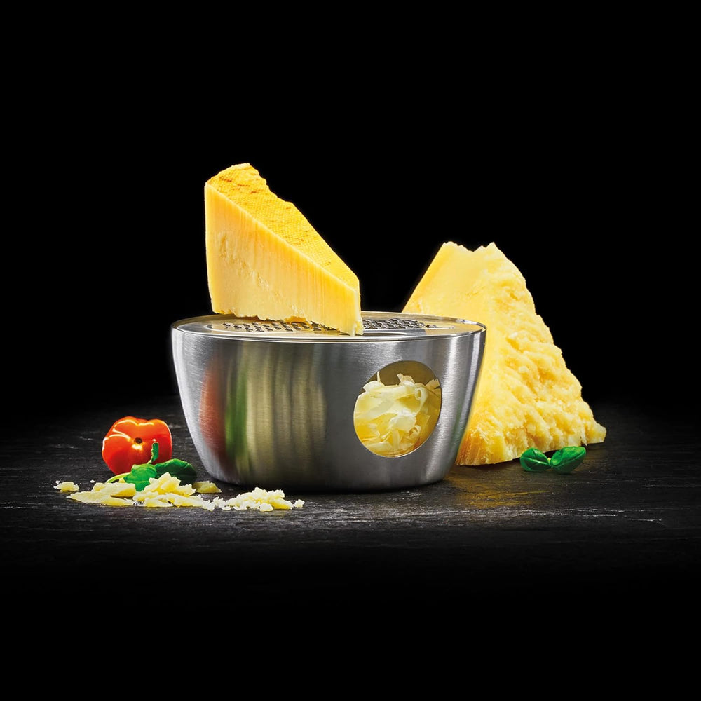 Lurch 220272 RazorTech EDS Parmesanreibe mit Deckel und Auffangschale aus Edelstahl, ؘ13 x 6 cm