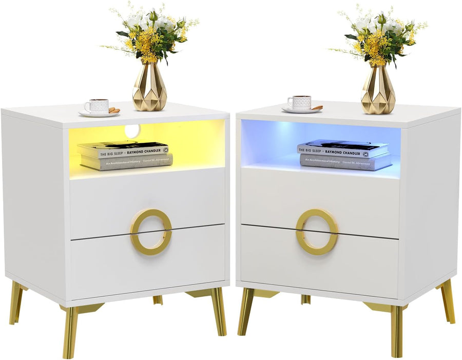 Lvhecforhm Nachtschrank 2er Set Weiss, Hochglanz Nachttisch, Modern Nachttisch 2 Schubladen, Nachtis