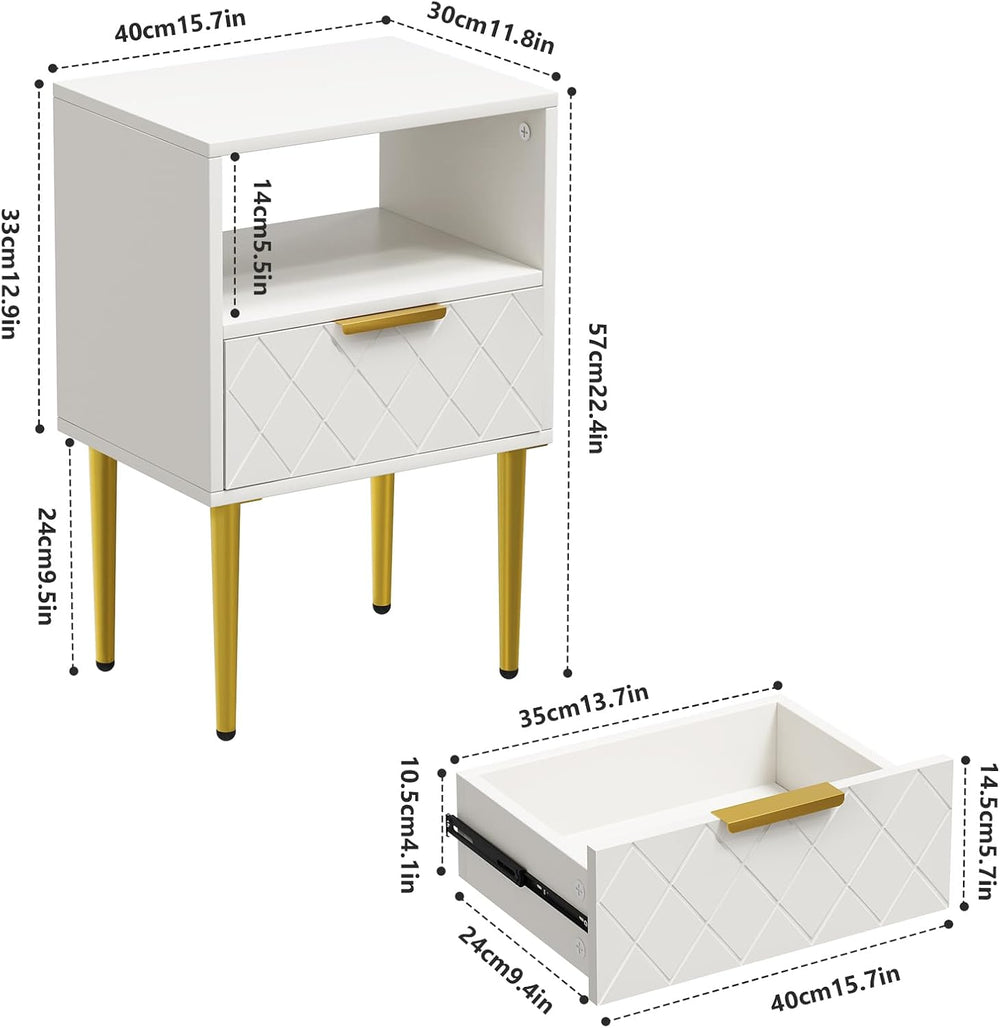 Lvhecforhm Nachttisch Weiss, Nachtschrank mit 1 Schubladen, Nachttische mit 1 Offenen Ablagen, Moder