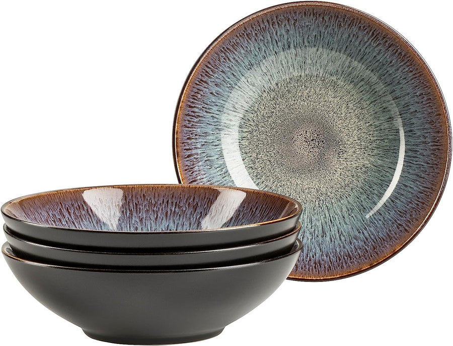 MÄSER 935130 Serie Teona, 4er Suppenteller Set mit grün-brauner Reaktivglasur, 4 grosse tiefe Teller