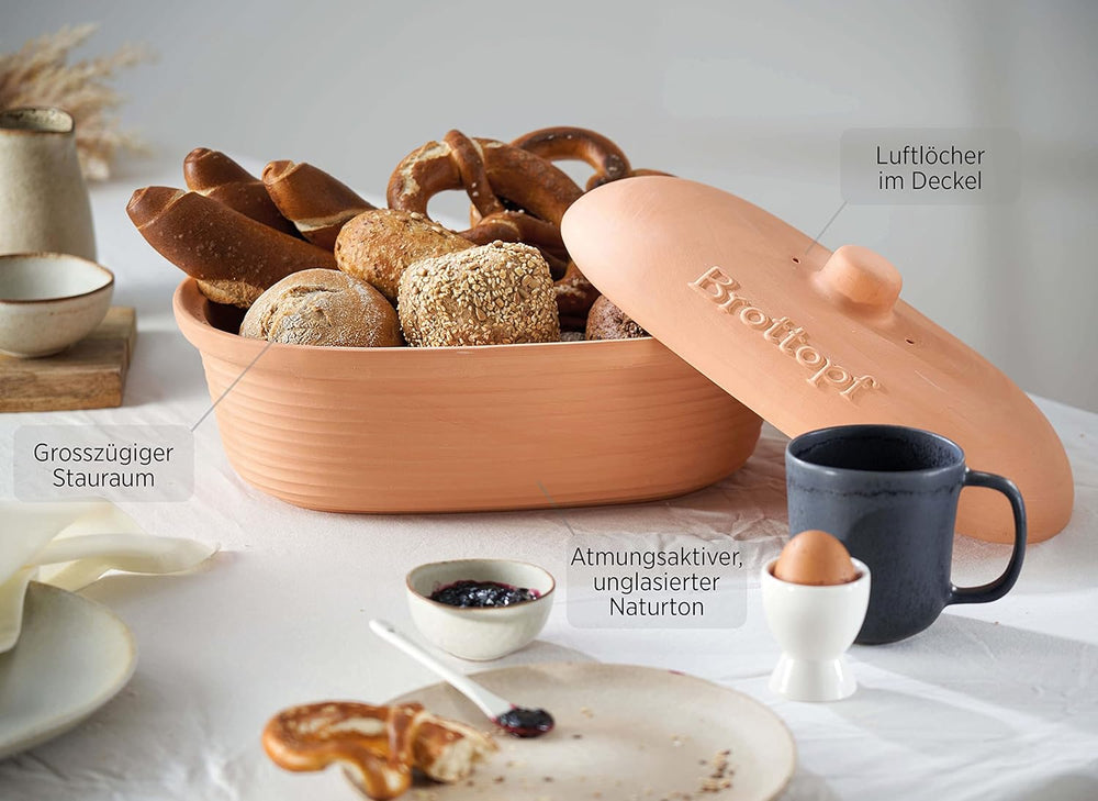 MÄSER 931996 Serie Ceramica Brottopf oval aus Naturton - Praktische Brotaufbewahrung - Brotbehälter