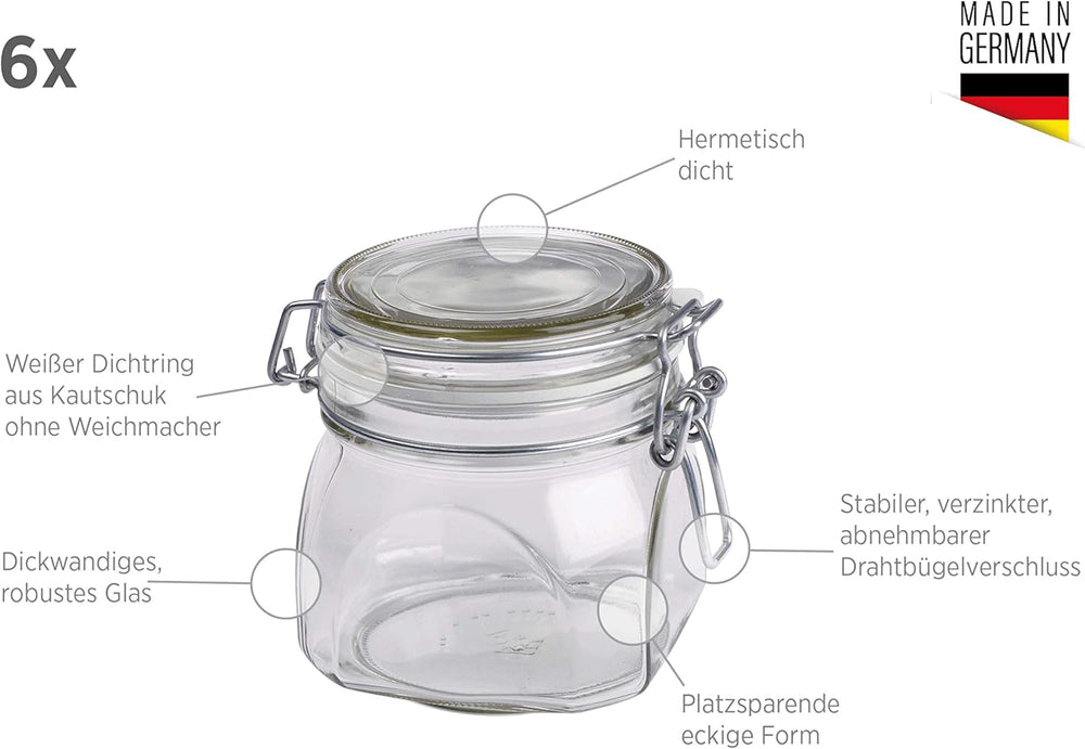 MÄSER 925339 Gothika, Einmachgläser 750 ml, 6er Set, made in Germany, Vorratsgläser mit Deckel und D