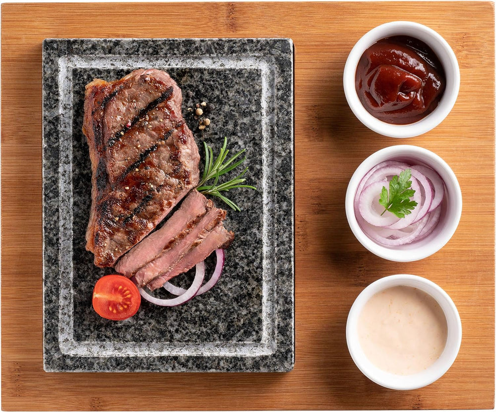 MÄSER 931758 Heisser Stein, Grillstein Set mit Naturgrillstein aus Granit, 3 Dipschalen und Bambus H