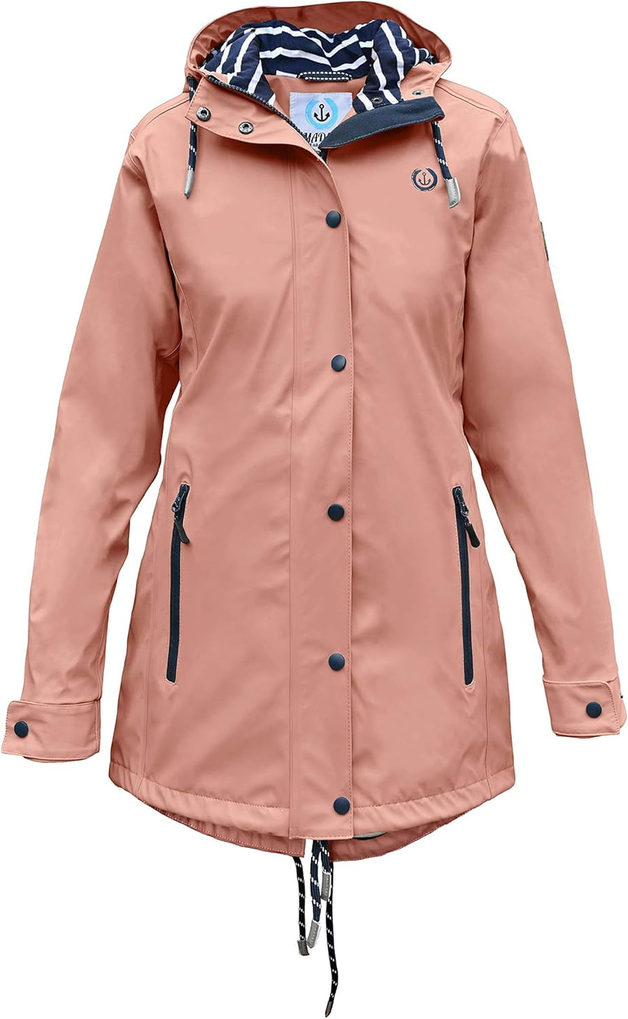 MADSea Damen Regenmantel Friesennerz Maritimes Gestreiftes Innenfutter Rosa, Grösse:36