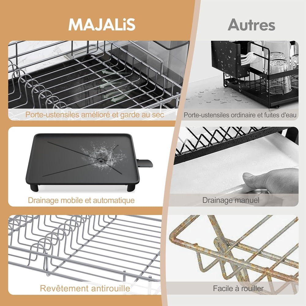 MAJALiS Abtropfgestell Geschirr mit Abtropfschale, Edelstahl Geschirrabtropfgestell, Abtropfgestell
