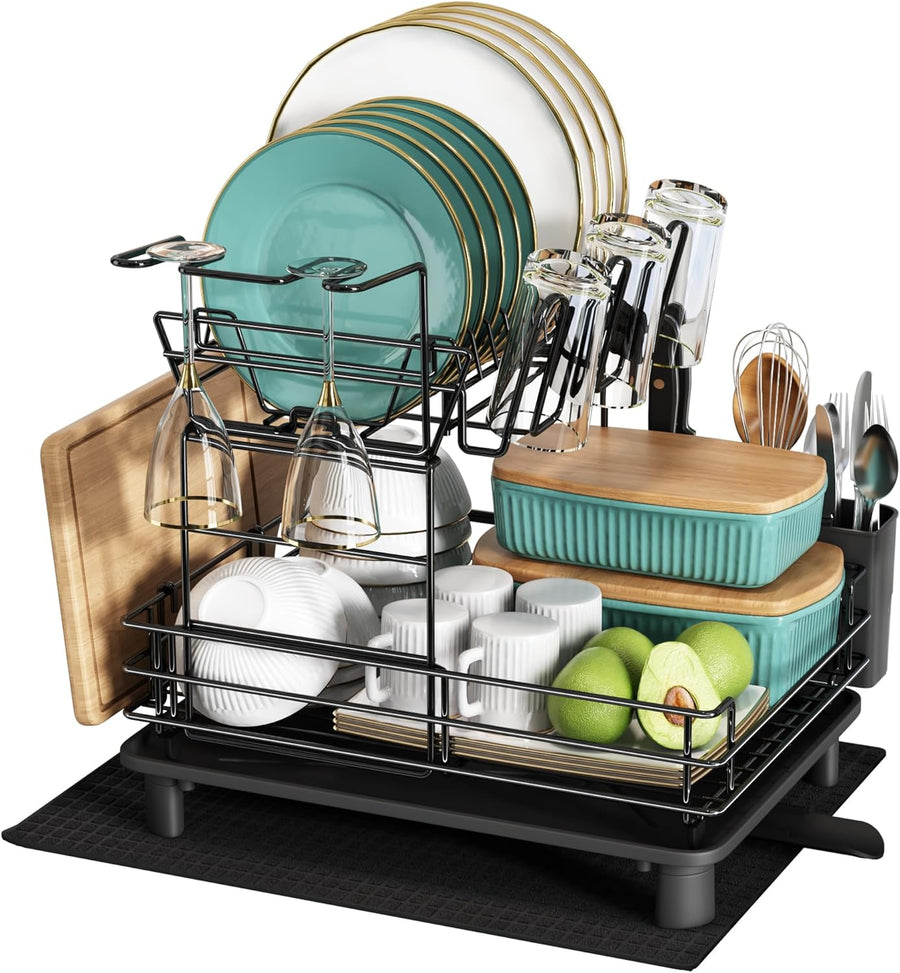 MAJALiS Abtropfgestell Geschirr, 2-Stufiges Geschirrabtropfgestell mit Abtropfschale und Abtropfmatt