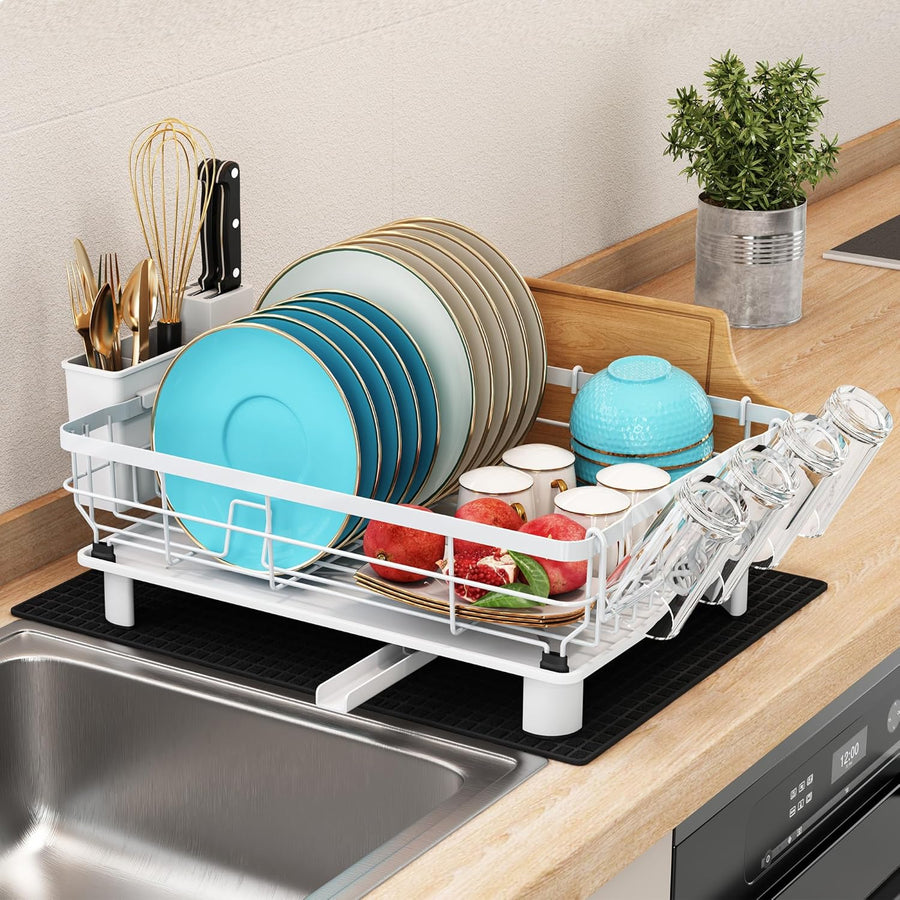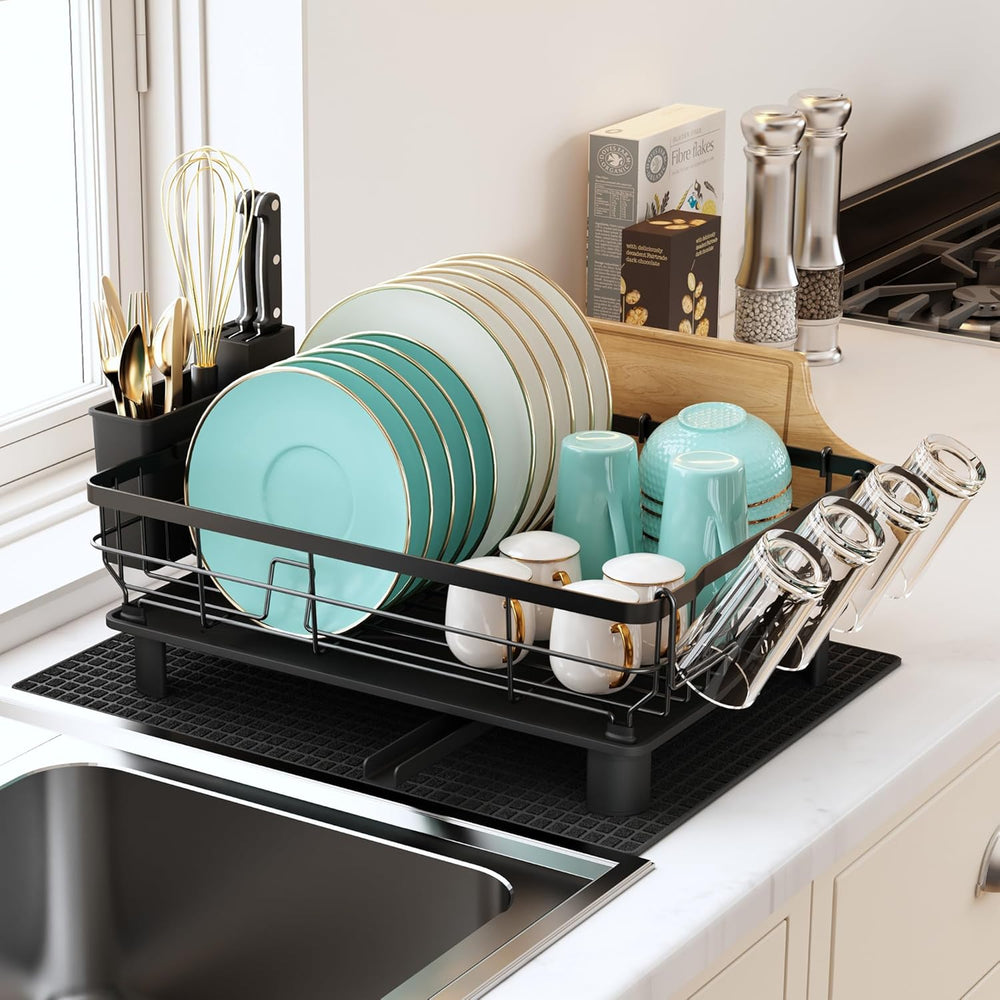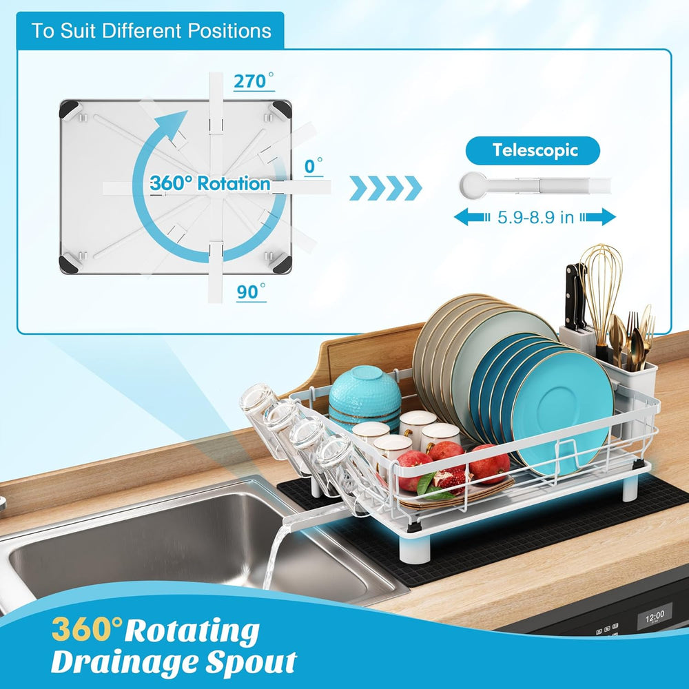 MAJALiS Abtropfgestell Geschirr, Geschirrabtropfgestell mit 360° Drehbarem Auslauf und Abtropfmatte,