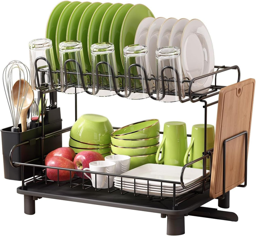 MAJALiS Abtropfgestell Geschirr, 2-stöckiges Edelstahl-Geschirrabtropfgestell mit Abtropfschale und