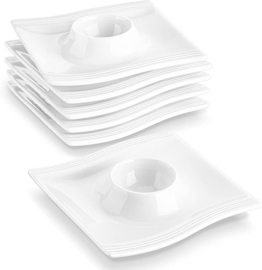 MALACASA, Serie Flora, 6 TLG. Eierbecher Set, Cremeweiss Porzellan Eierbecher mit Ablage, Eierstände