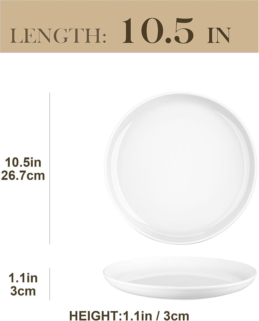 MALACASA, Serie REG, 10,5" Teller Set 6 Personen, Weiss Porzellan Speiseteller, Pastateller für Spül