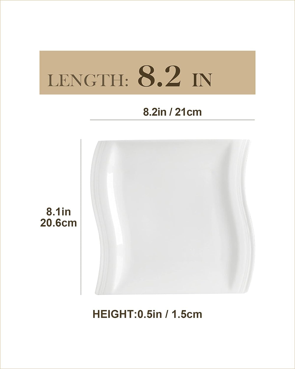 MALACASA, Serie Elisa, 6 teilig Set 7,4" Porzellan Dessertteller 19x19x1,9cm Kuchenteller Tafelservi