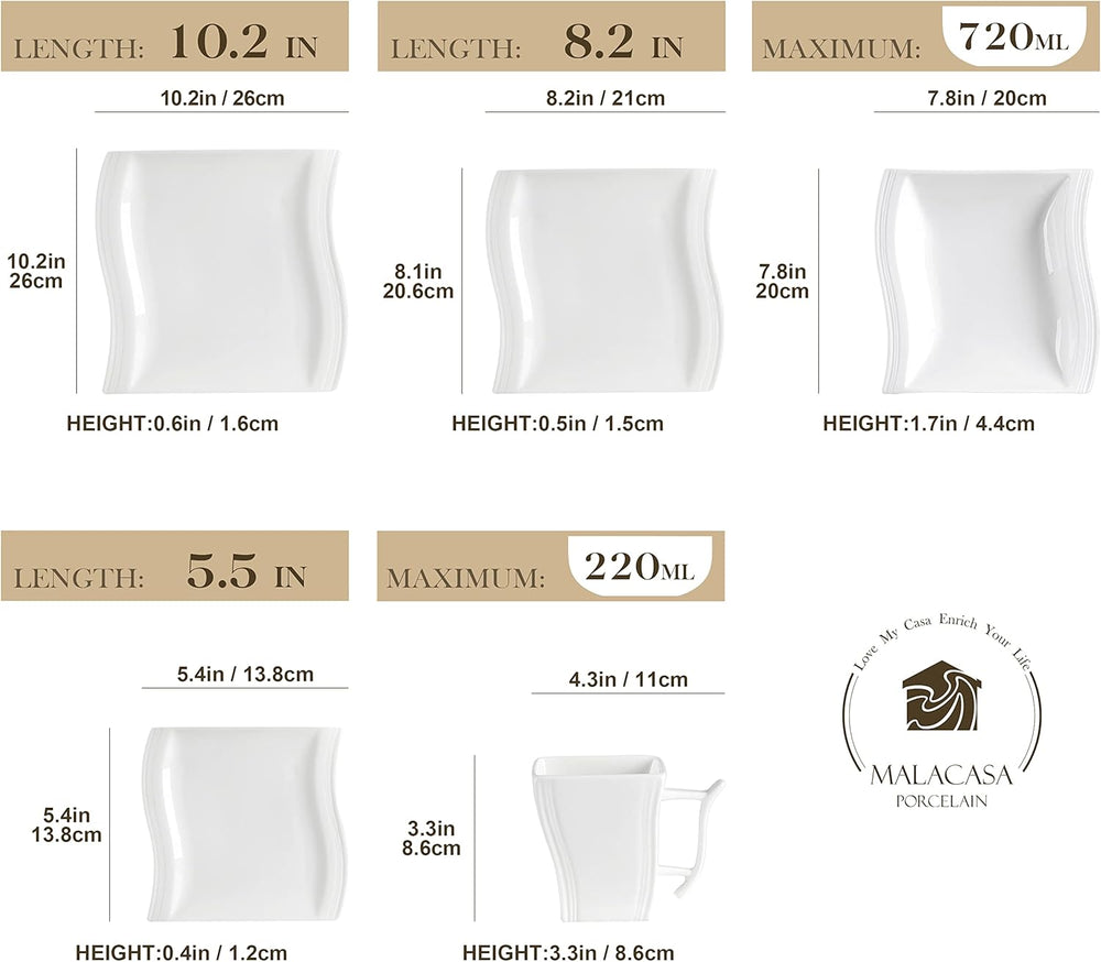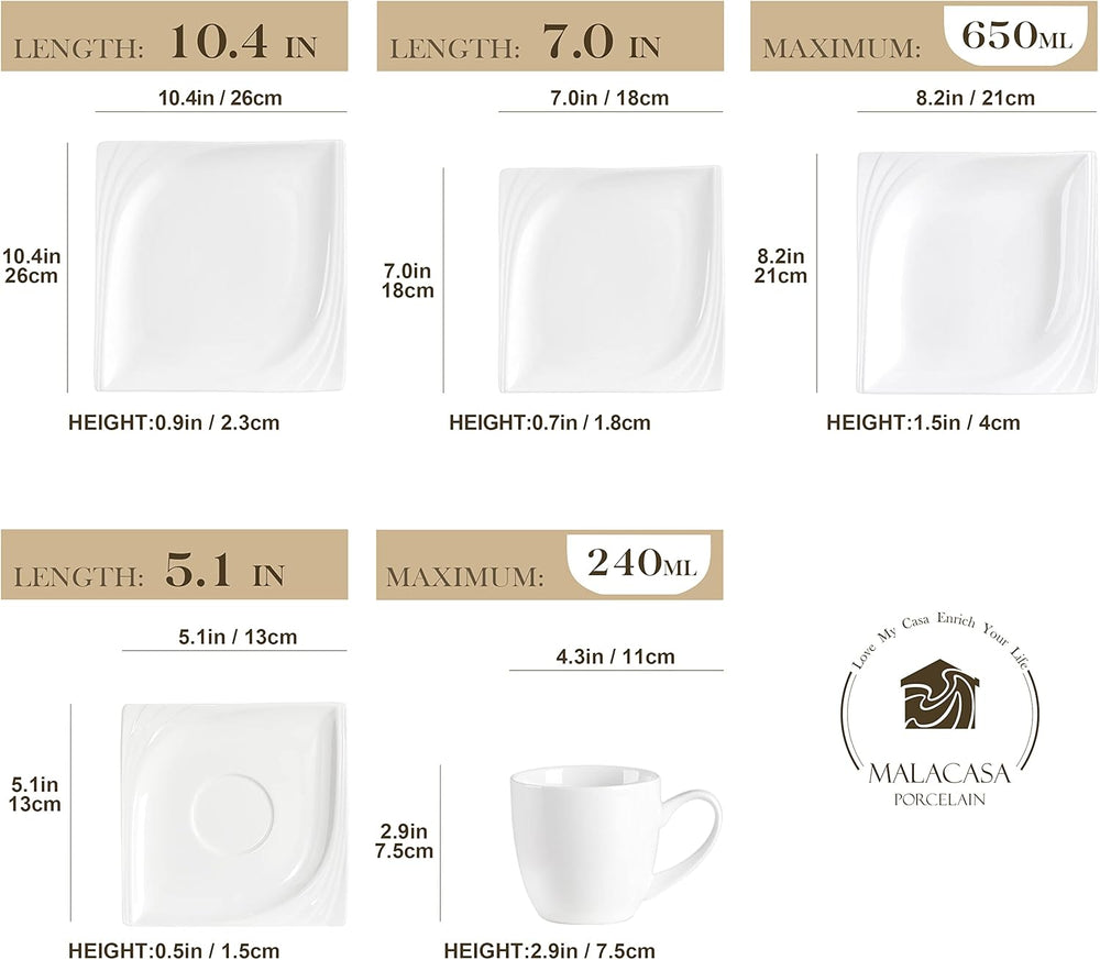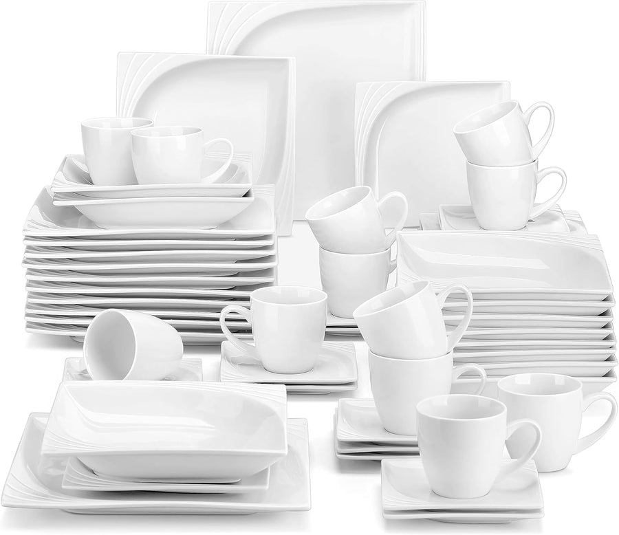 MALACASA, Serie Julia, Geschirrset 12 Personen, 60 Teilig Porzellan Geschirr Set,Kombiservice Tafels