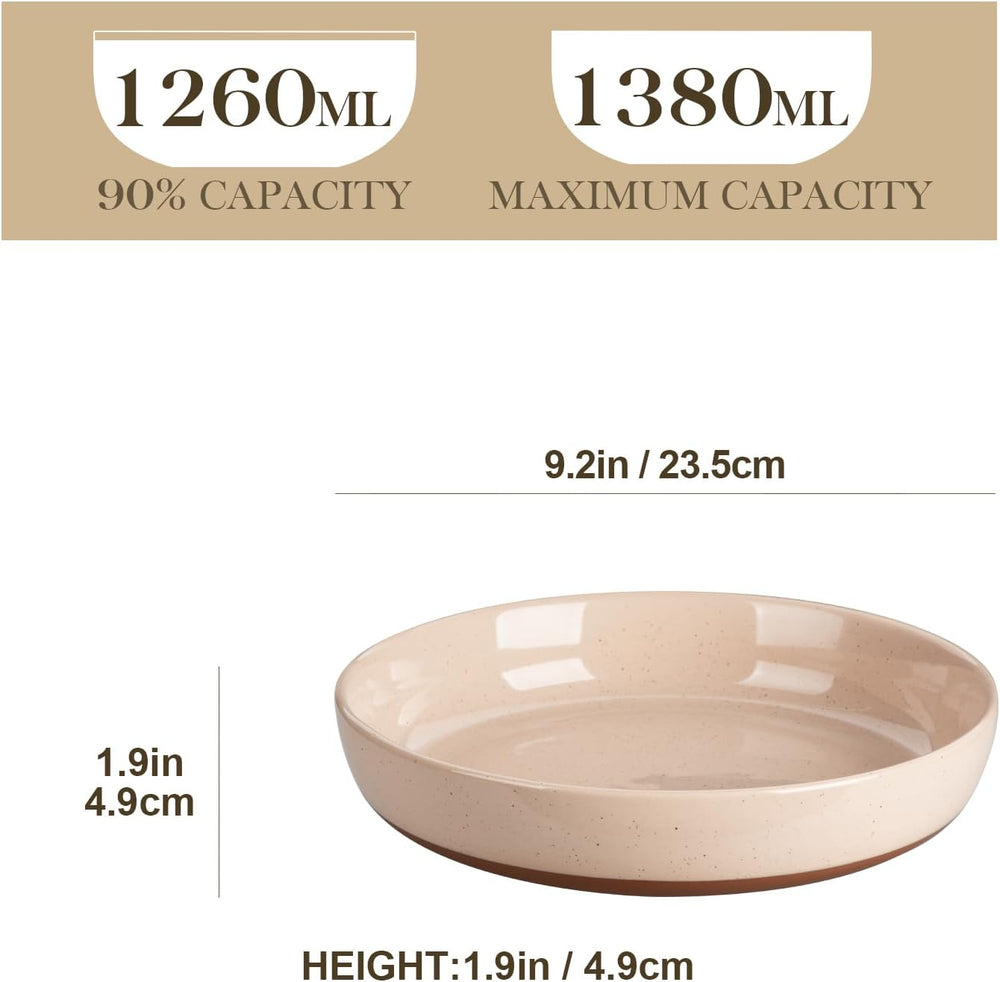 MALACASA, Serie TARA, 4 Teilig Steinzeug Suppenteller, 1380ml Pastateller gross tief, Suppenschalen,