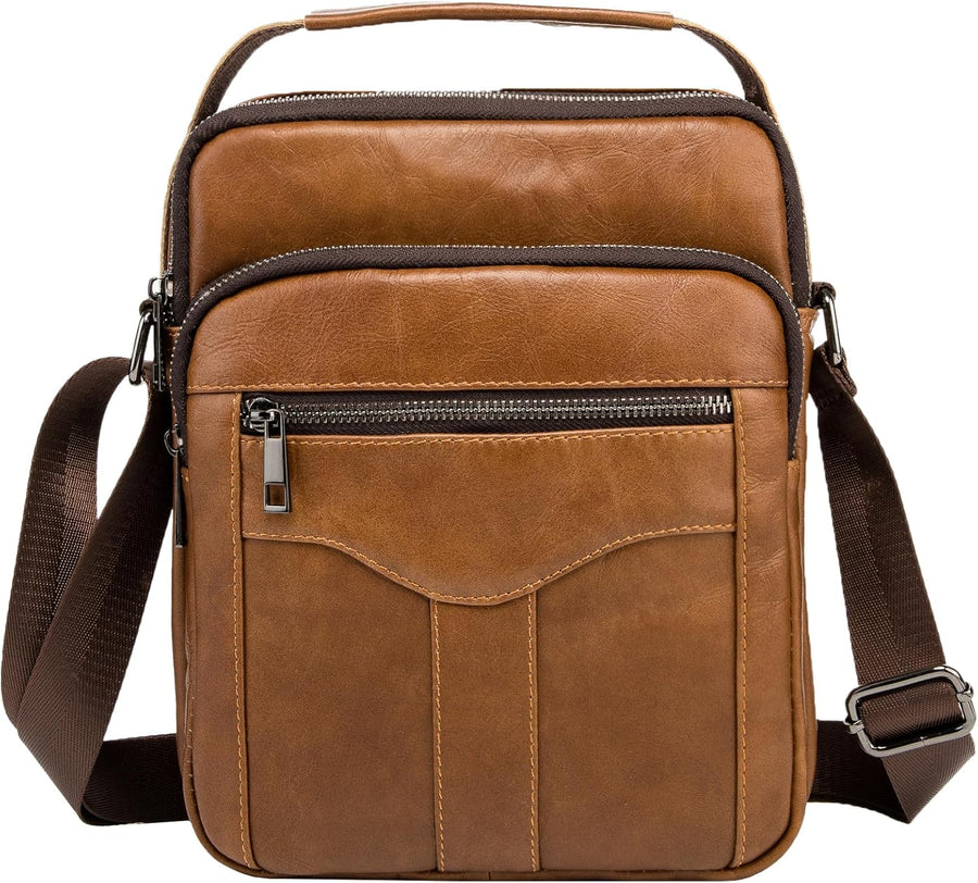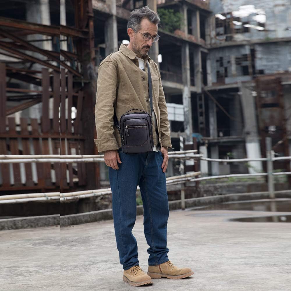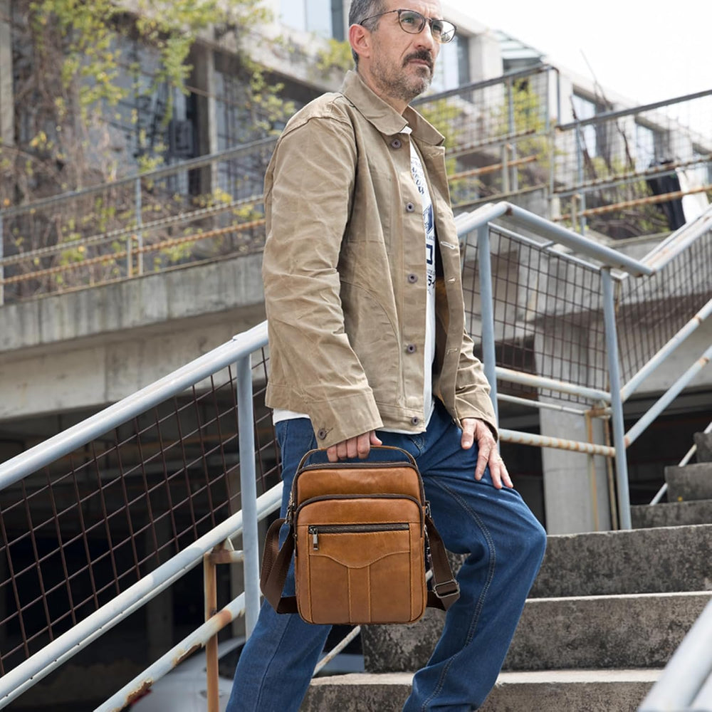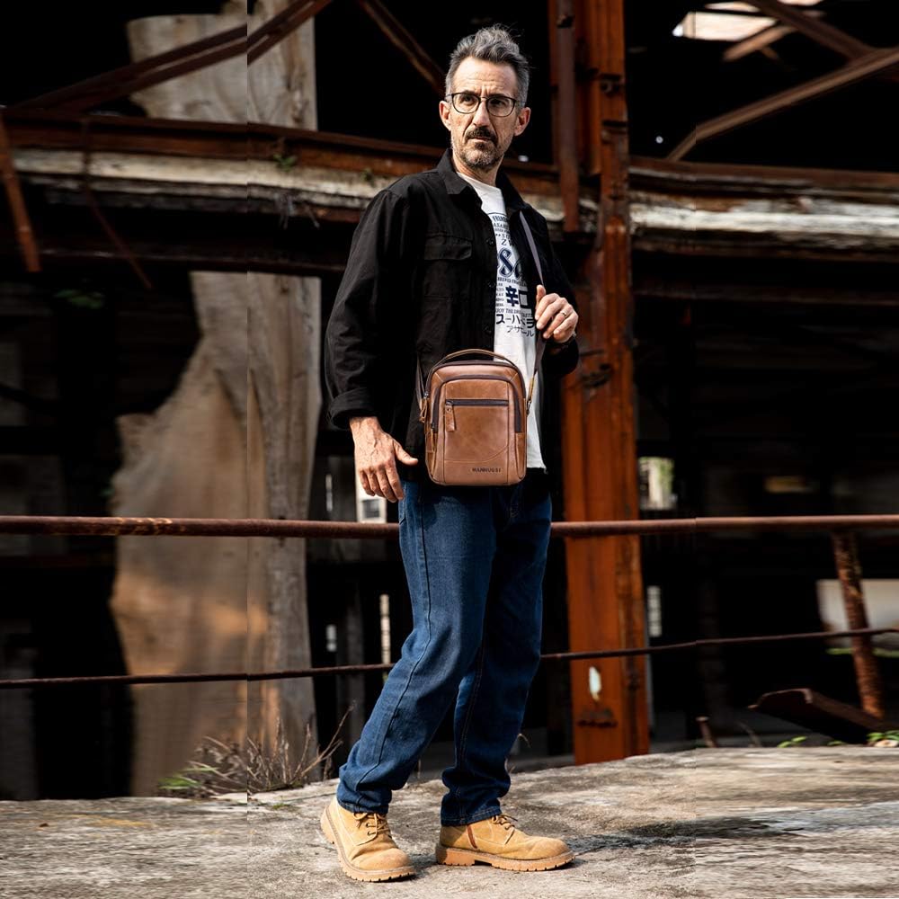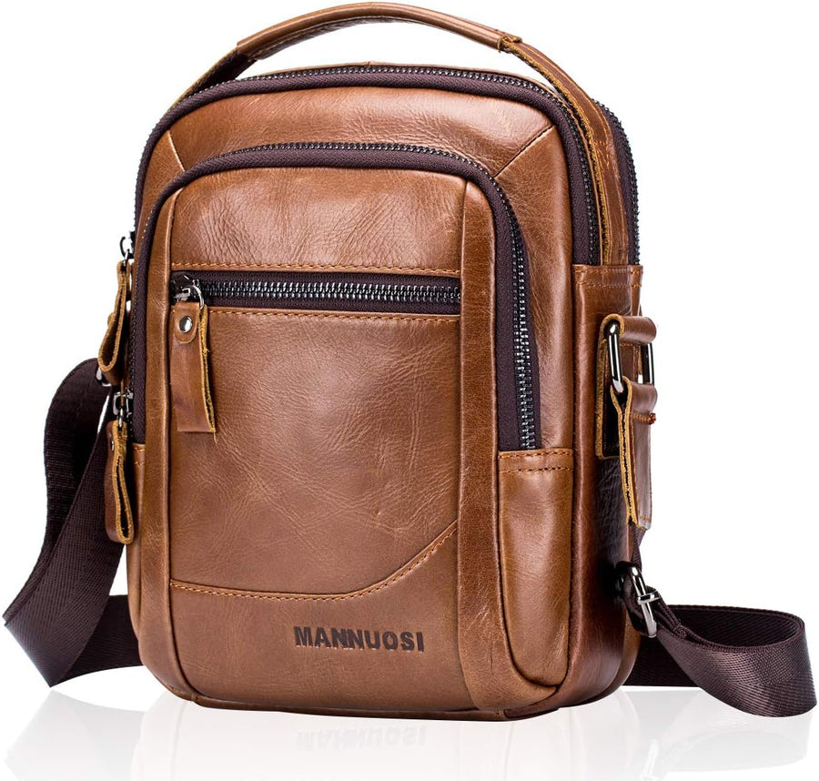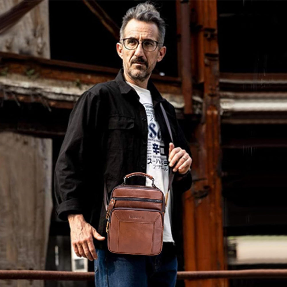 MANNUOSI Leder Umhängetasche Herren Schultertasche Leder Arbeit Taschen Mann Handtasche Herren Messe