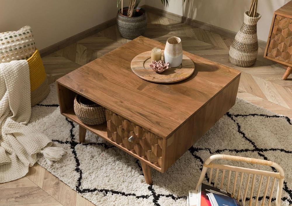 Massivmoebel24.de MOSAYK Couchtisch Akazie - Mehrere Farben, Farbe:Natur lackiert, Grösse:70x70 cm 7