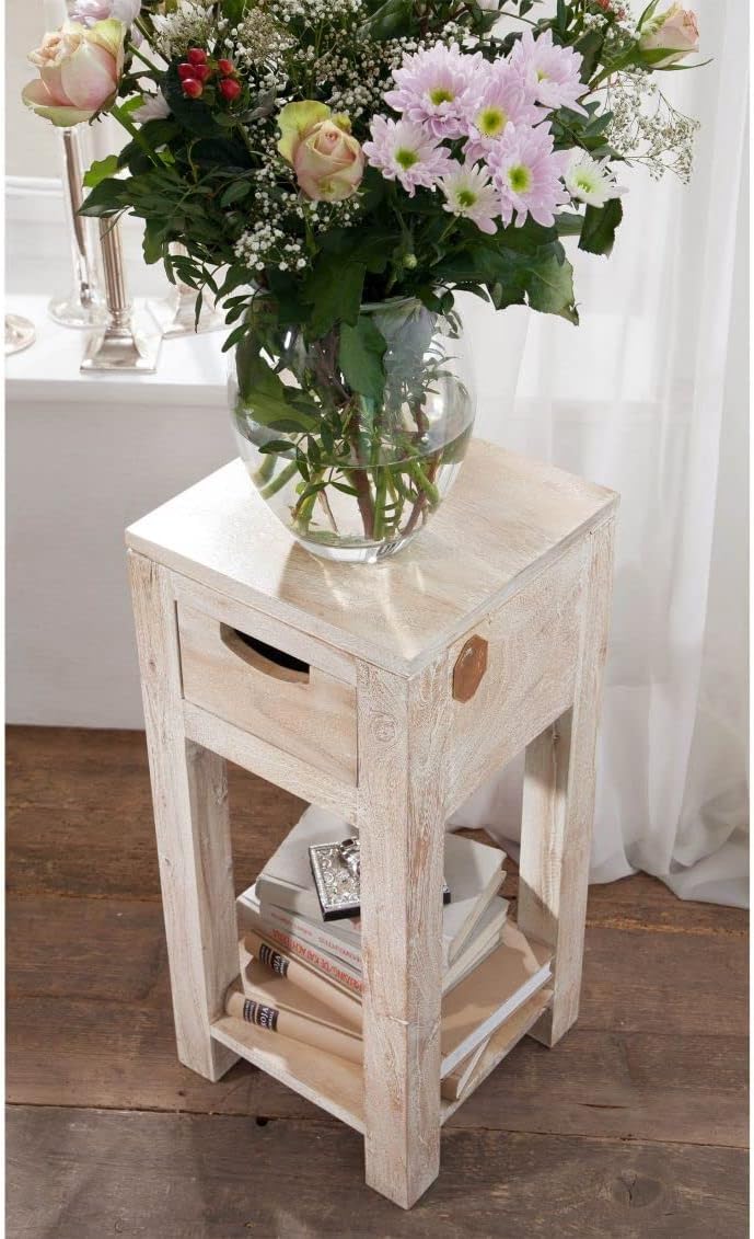 MASSIVMOEBEL24.DE Akazie massiv Möbel Holz Beistelltisch Massivmöbel Nature White #31 getüncht 29x29