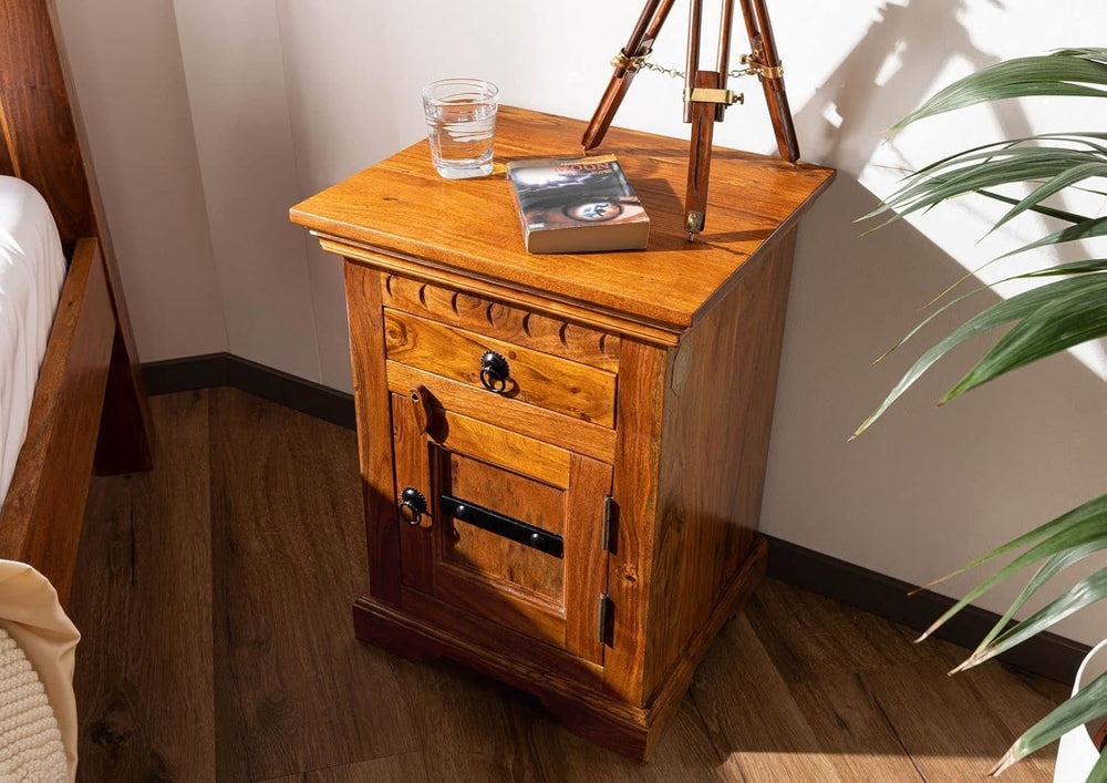 MASSIVMOEBEL24.DE | Oxford - Nachttisch aus Akazie | Nougat | massiv lackiert | 1 Schublade + 1 Tür