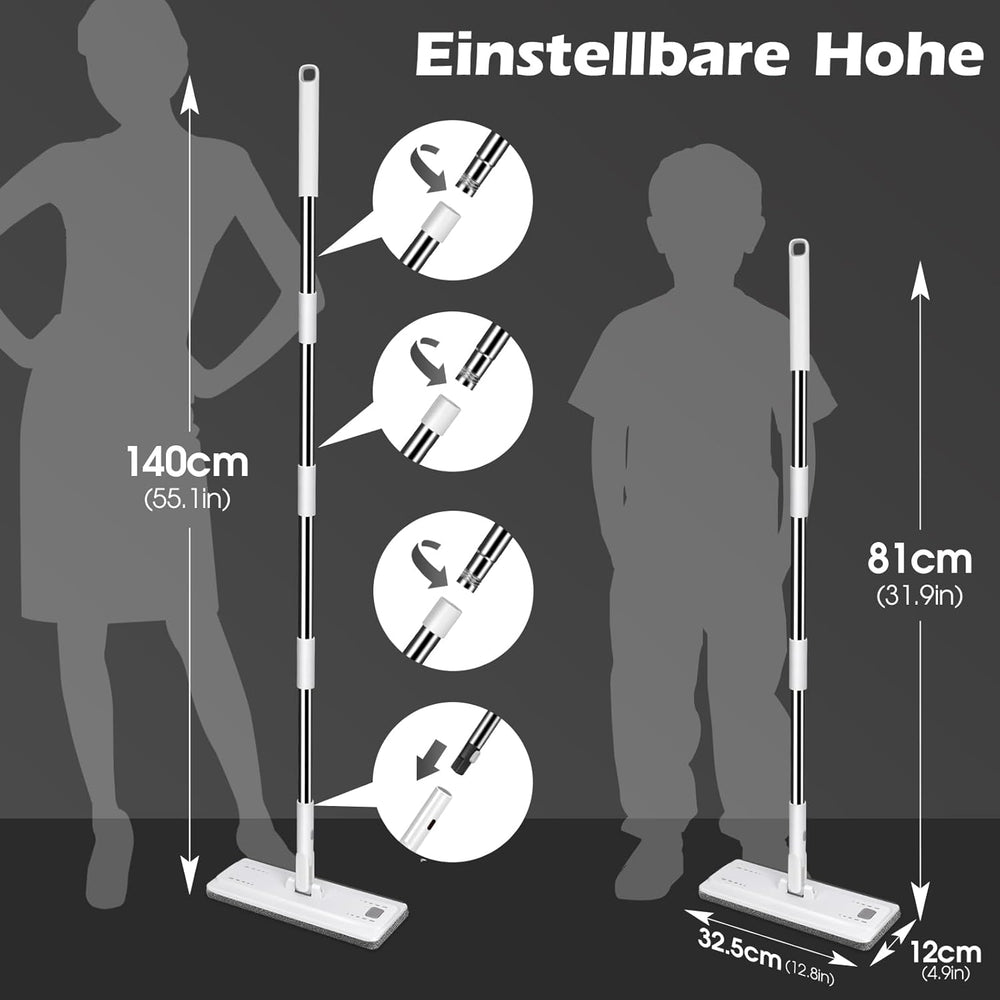MASTERTOP Flach Wischmopp-Eimer , 6 Wiederverwendbare Mikrofaser-Pads, 140 cm verlängerter Edelstahl