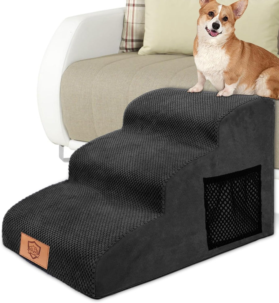 MASTERTOP Hundetreppe 4 Stufen, Hunderampe für Sofa aus Hochdichtem Schaumstoff, Haustiertreppe mit