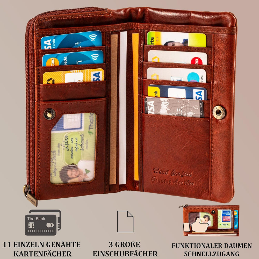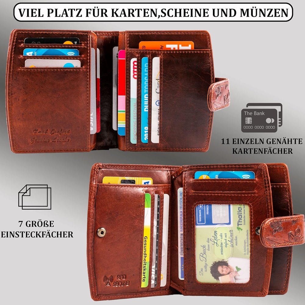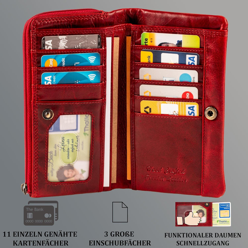 MATADOR Damen Geldbörse Echt Leder Gross 11 Kartenfächer - TÜV geprüfter RFID & NFC Schutz - Handgef