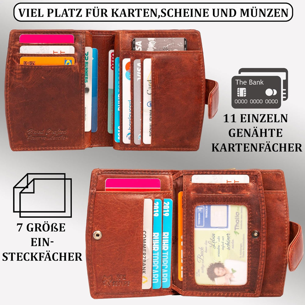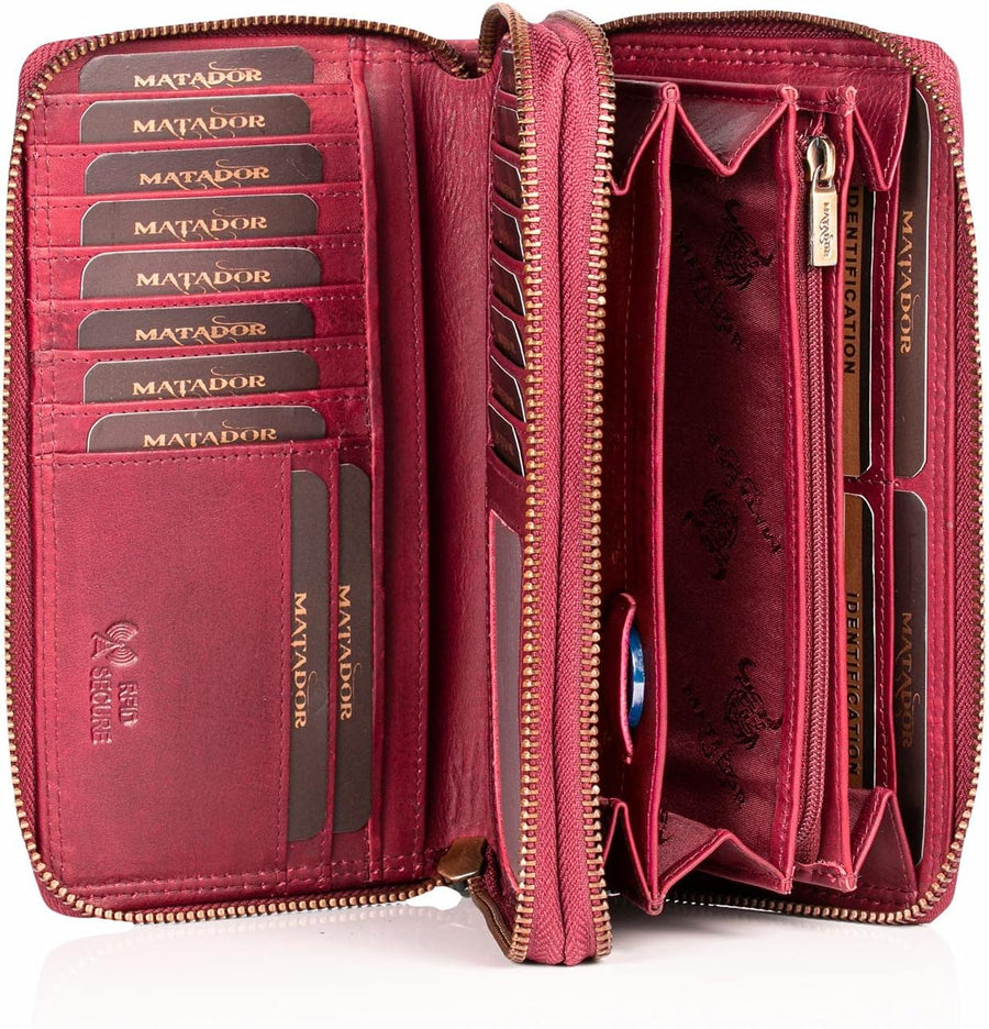 MATADOR Damen/Frauen Geldbörse mit TÜV Geprüfter RFID/NFC Schutz Hochwertige Portemonnaie Rinds Lede