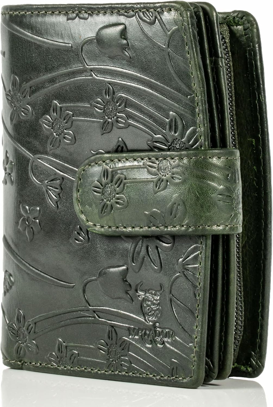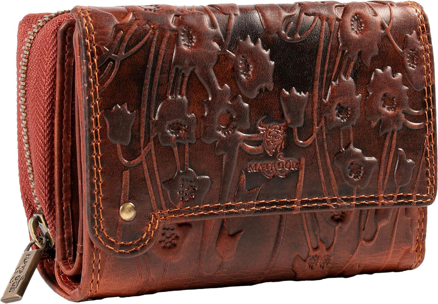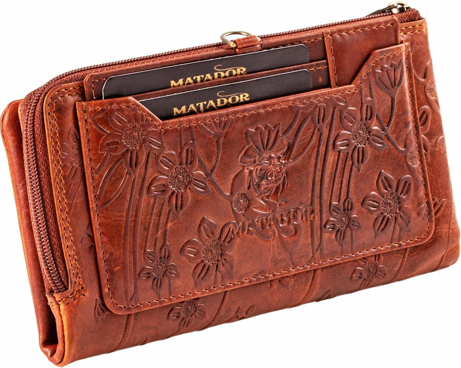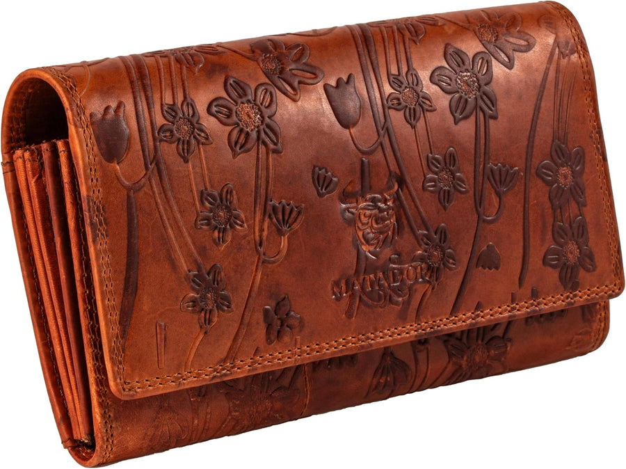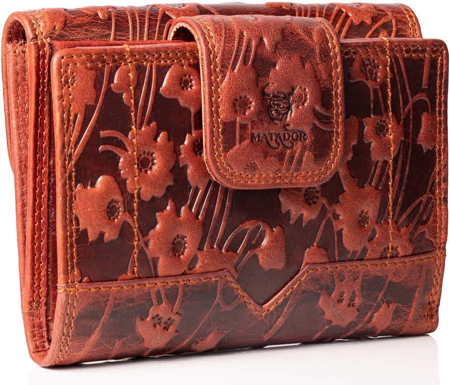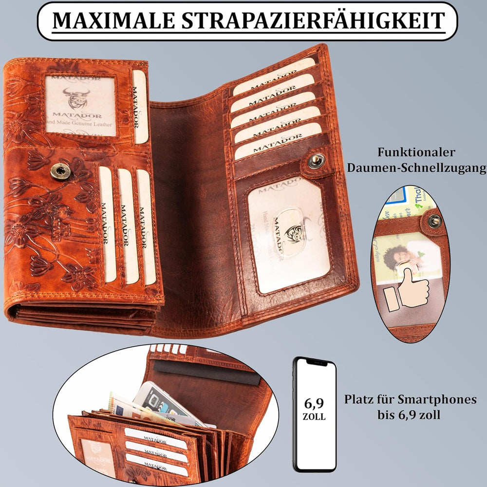 MATADOR Damen Geldbörse aus Echt Leder - TÜV Geprüfter RFID/NFC Schutz - Portemonnaie Blumenprägung
