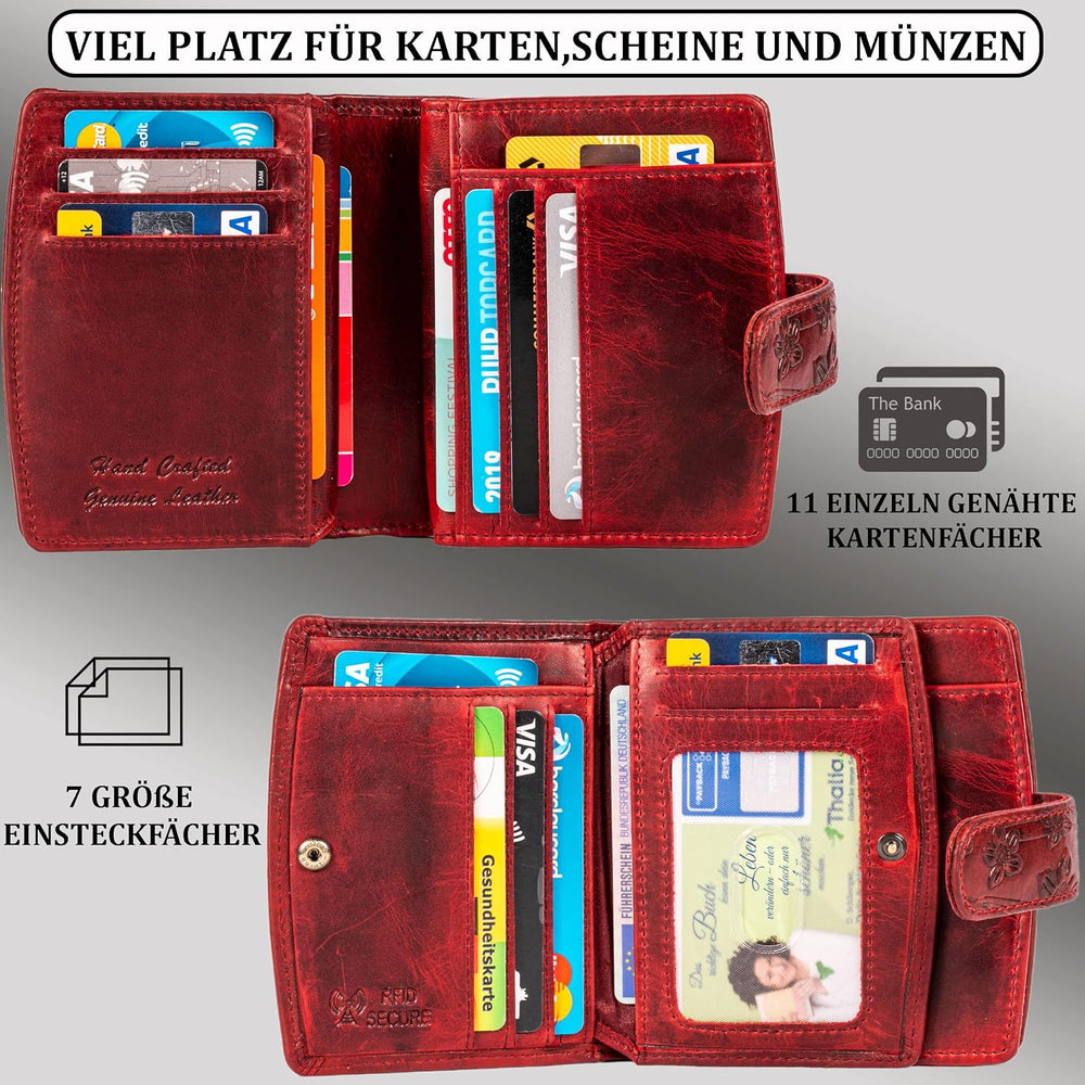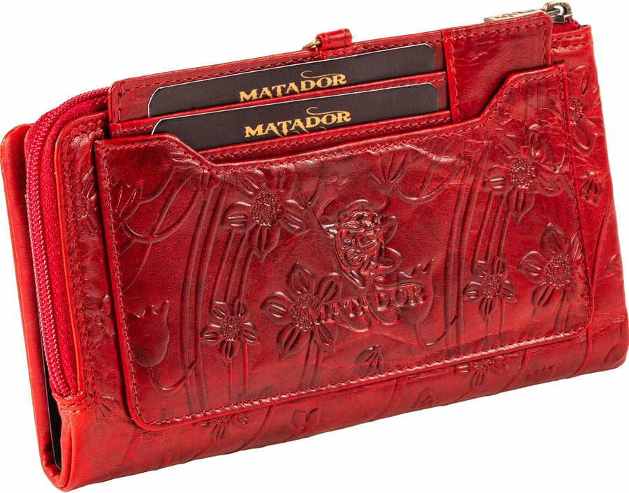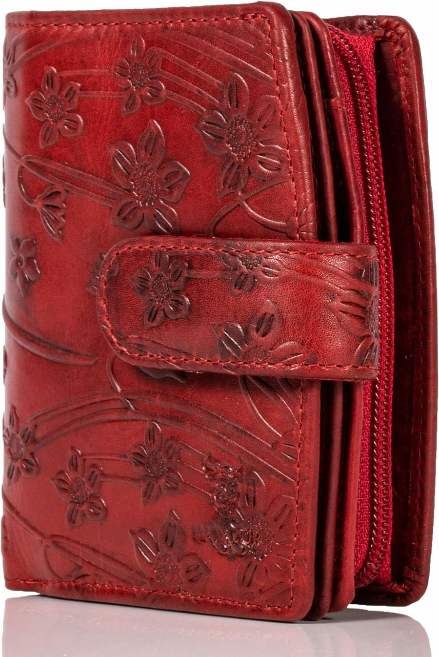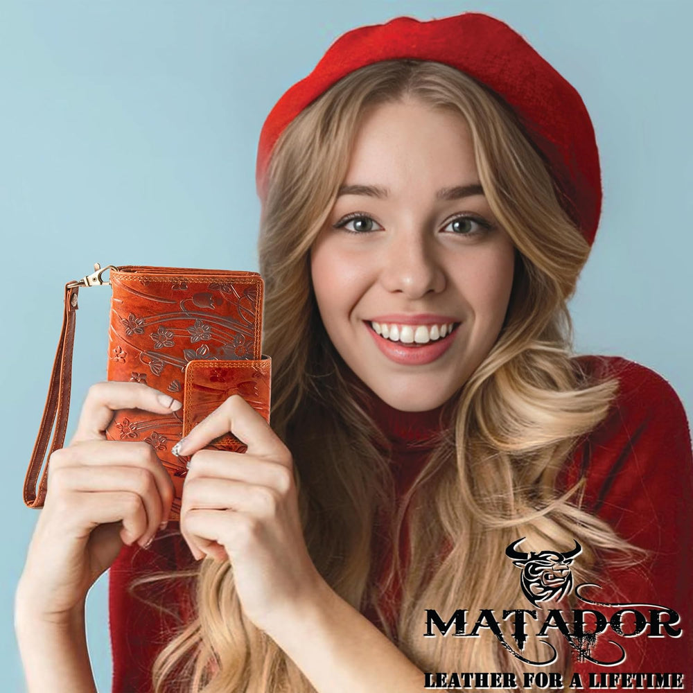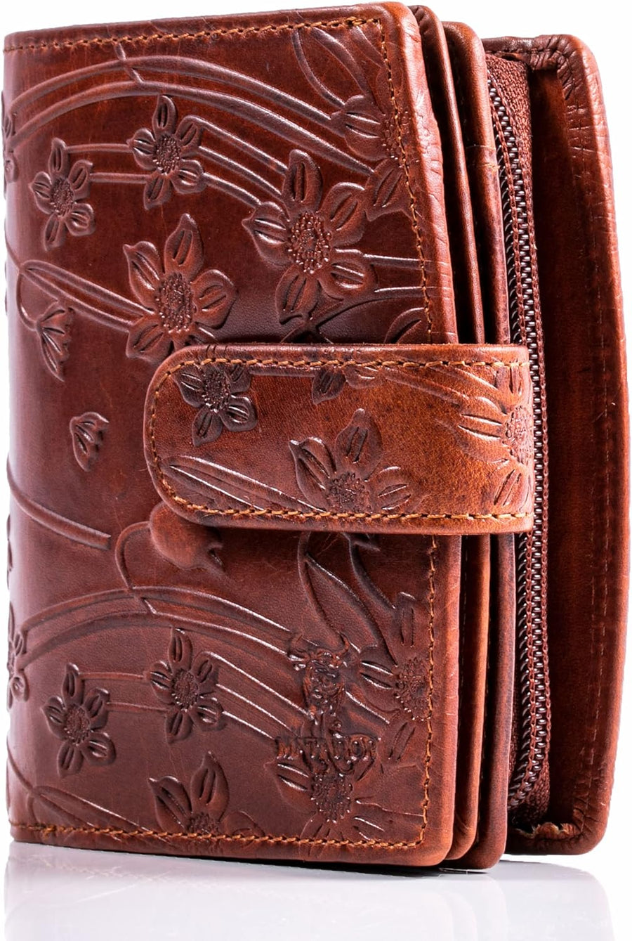 MATADOR Damen Geldbörse aus Echt Leder - TÜV Geprüfter RFID/NFC Schutz - Portemonnaie Blumenprägung