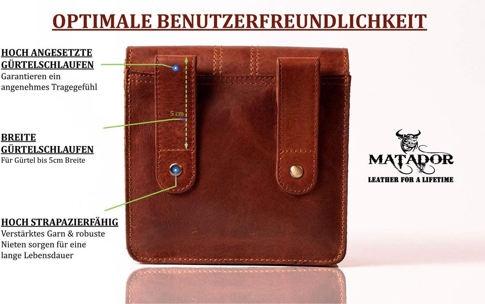 MATADOR 'Málaga Pro' robuste Echtleder Gürteltasche Leder Hüfttasche geräumige Outdoor Ledertasche H