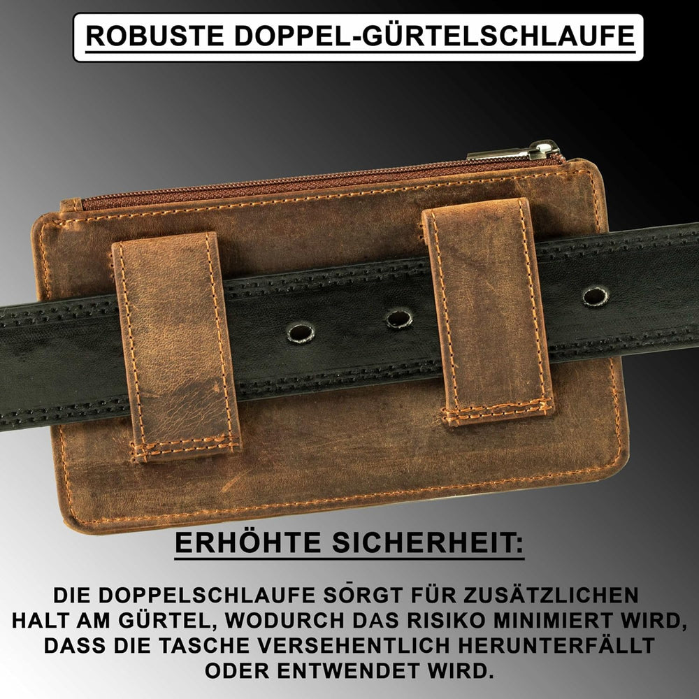 MATADOR 2in1 Echtleder Handytasche Gürtel mit Reissverschlussfach #Brisbane, mit edler Geschenkbox u