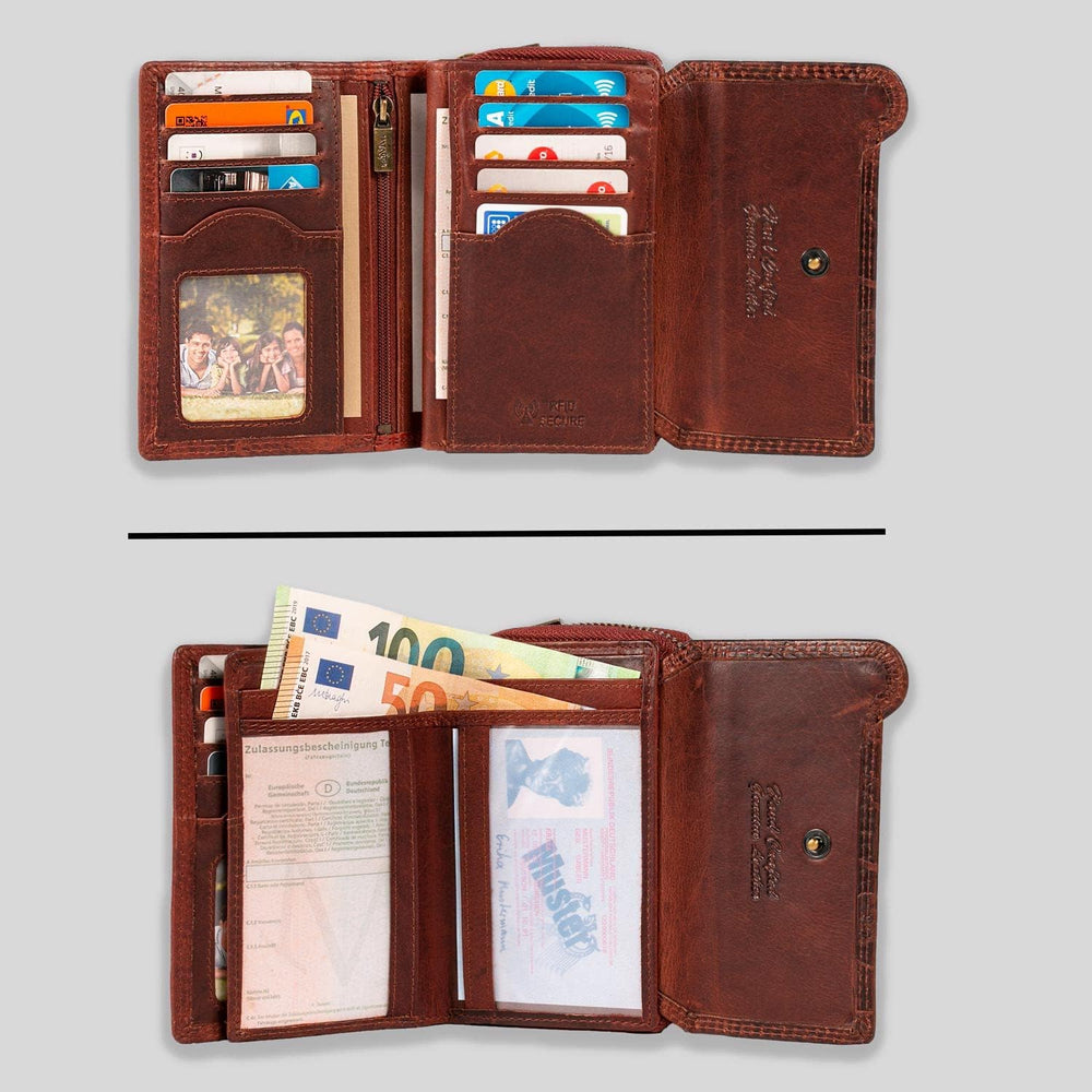 MATADOR Damen/Frauen Geldbörse TÜV Geprüfter RFID & NFC Schutz Portemonnaie Rinds Leder Geldtasche m